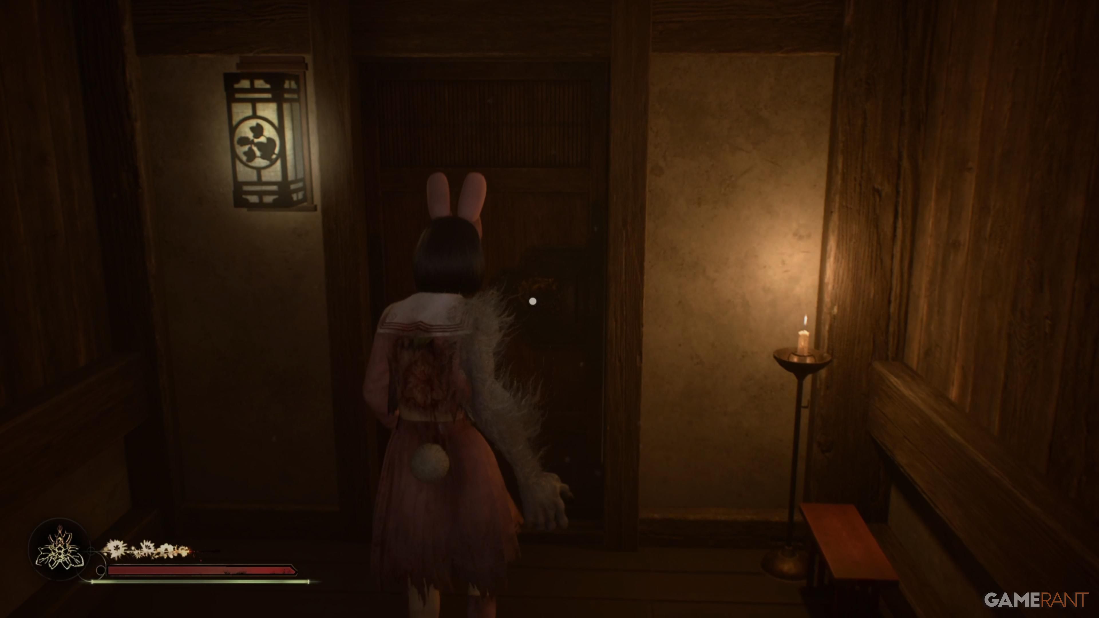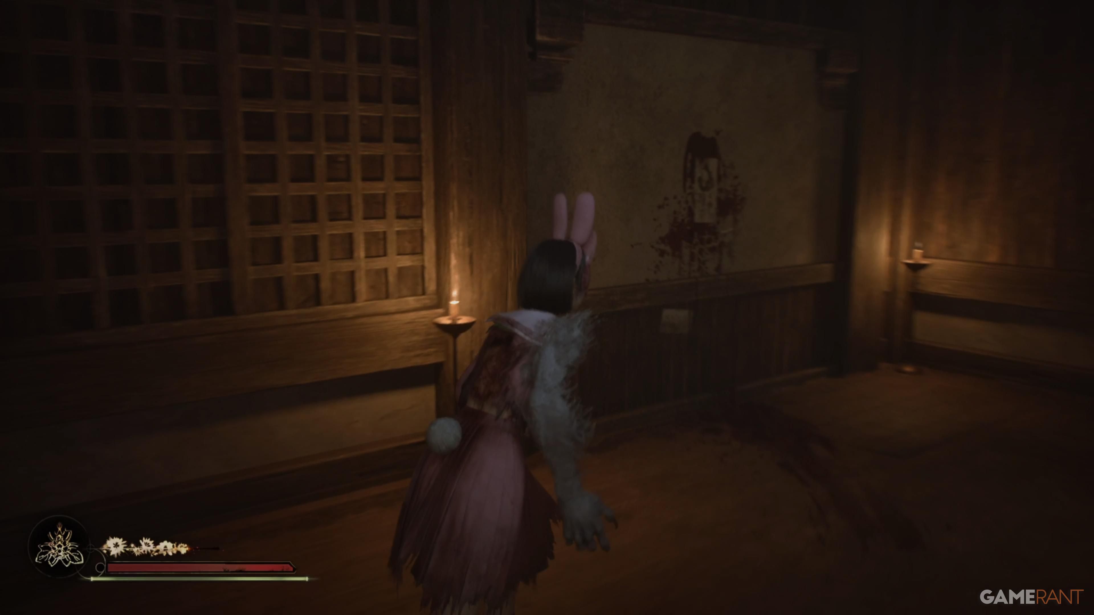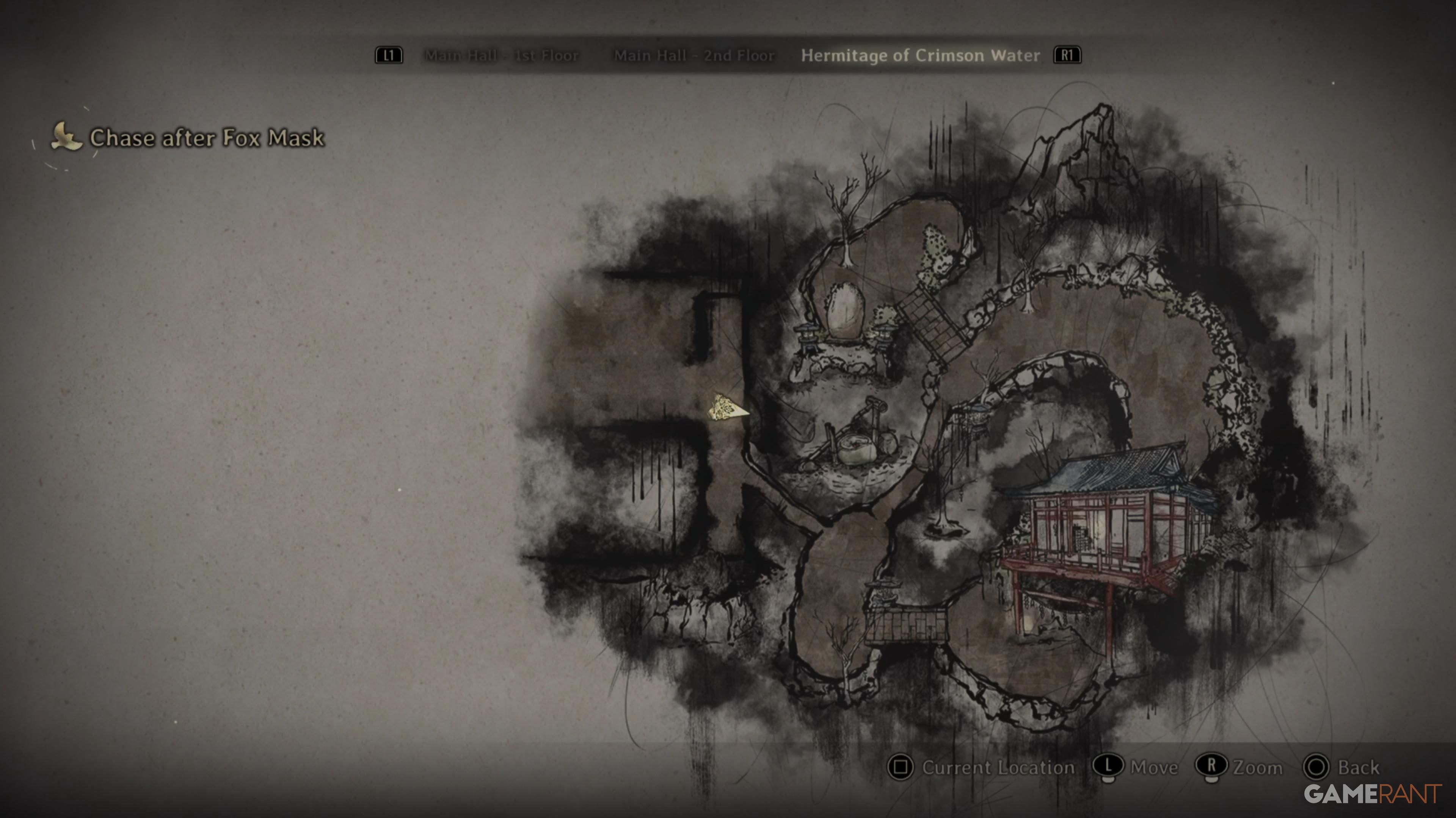 Defeat the enemies in this area, and you’ll discover a wall with a special mark. You can pass through it by using your vision ability, which is activated by pressing L2/LT on your controller. Behind that, you’ll find an Inari Sama door that you can now unlock. This door leads to the Heritage of Crimson Water.