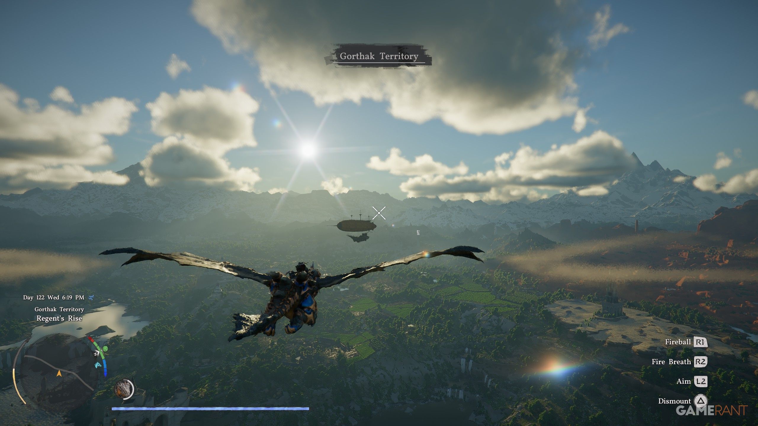 - While riding the Dragon, fly upwards and then dismount (Triangle/Y) and deploy your wings (Square/X) so you can glide onto the Sky Galleon.
