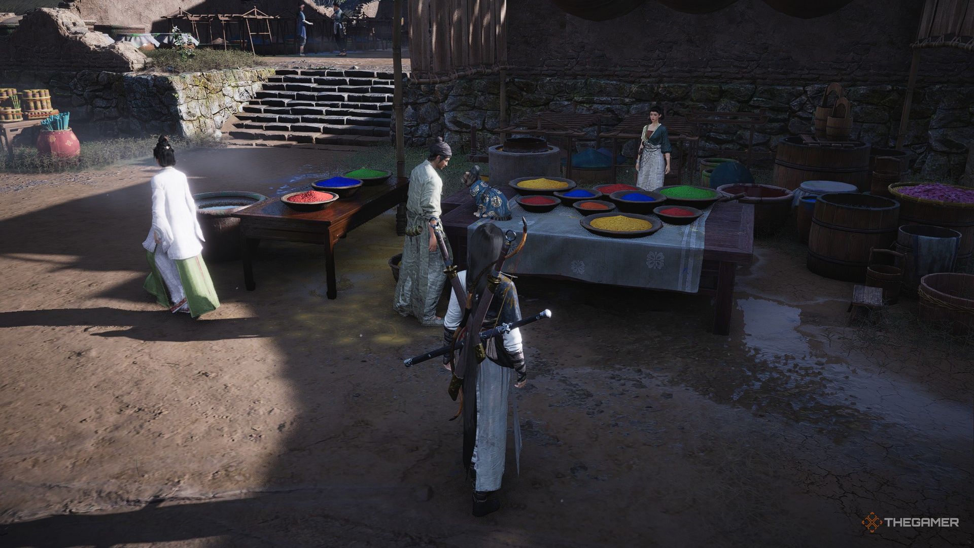 Masterwood Hamlet, west of the Wheatwind Bazaar Boundary Stone. | Mix the colors to make the designated shade. |