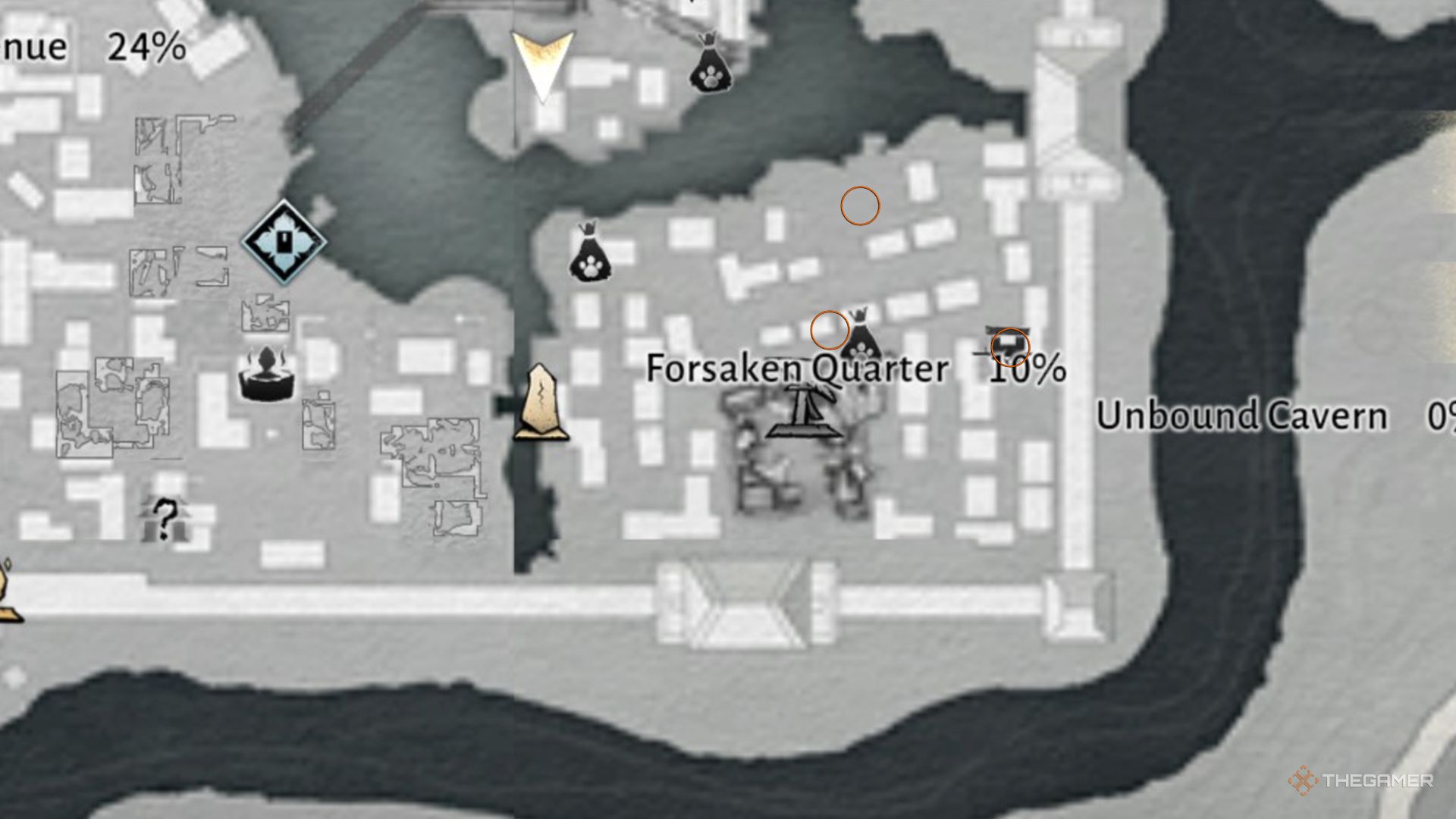 North of the Unbound Cavern in the Forsaken Quarter. | Read the riddle and deliver food to three people following the highlighted clues. |