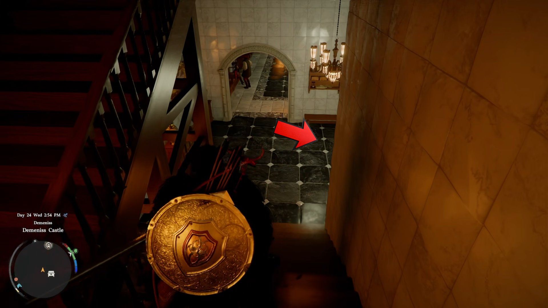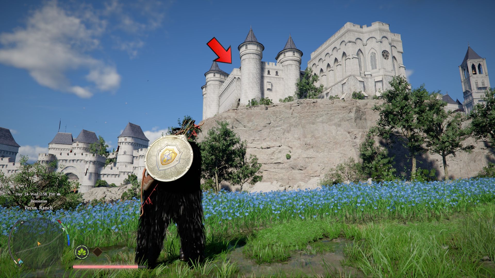 2. Head north towards Demeniss Castle and climb the sheer mountain wall to reach the castle fortifications.