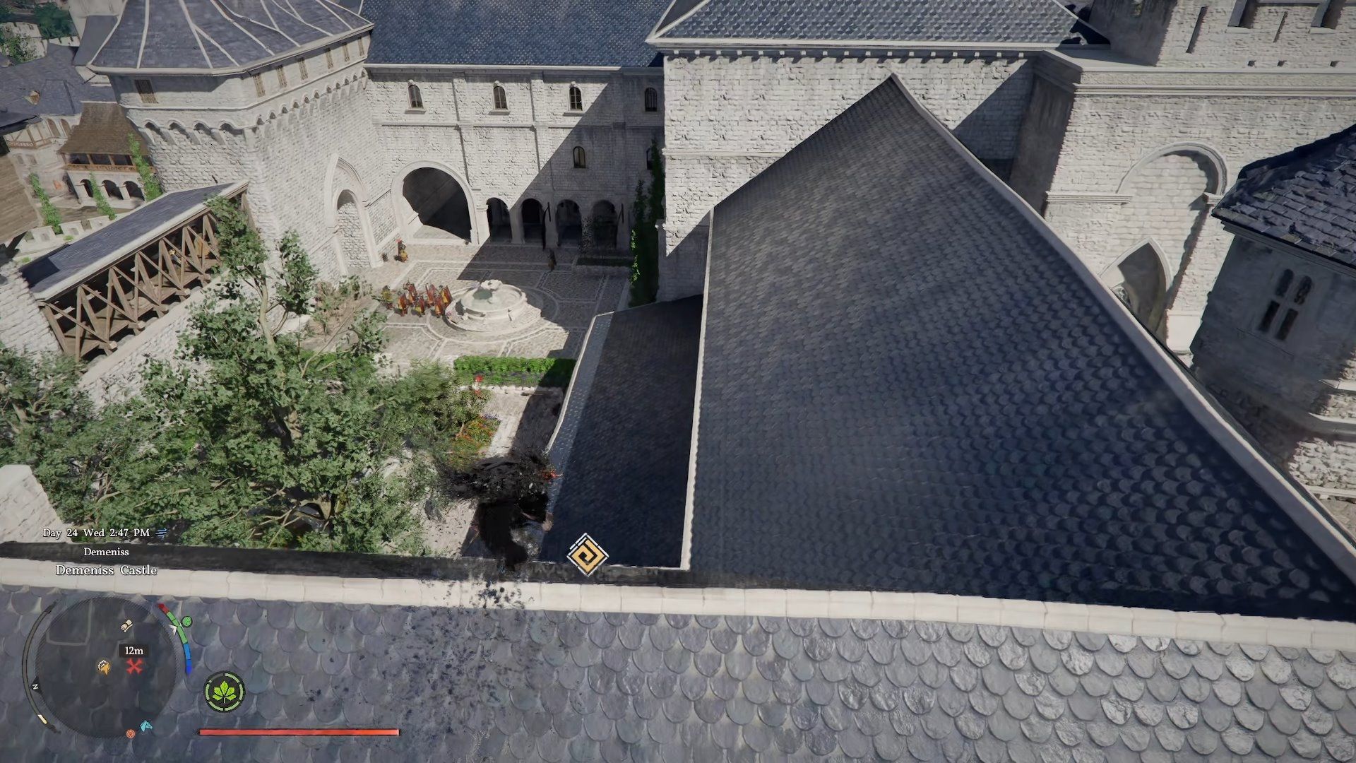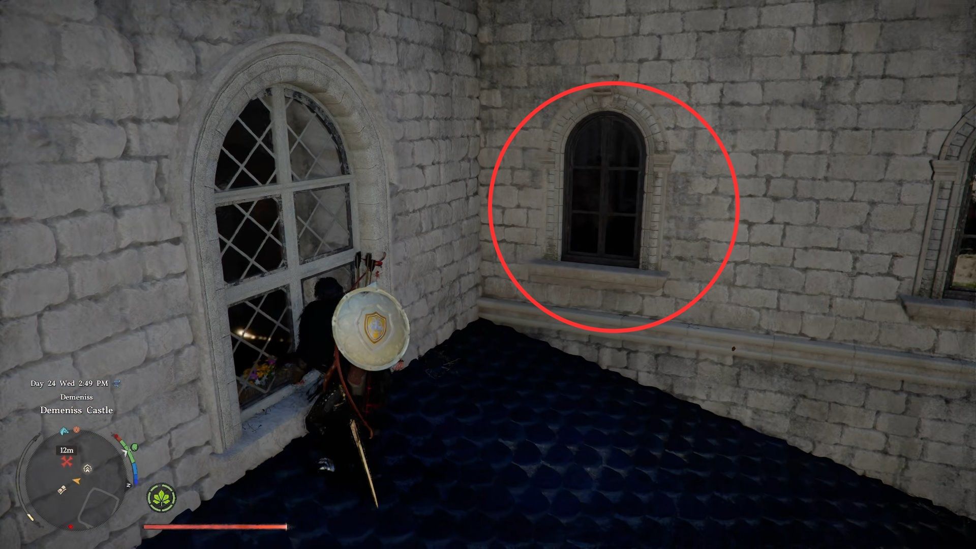 3. Climb the castle wall from the west side to reach the battlements. Climb the roof in front of you and drop down on the other side.