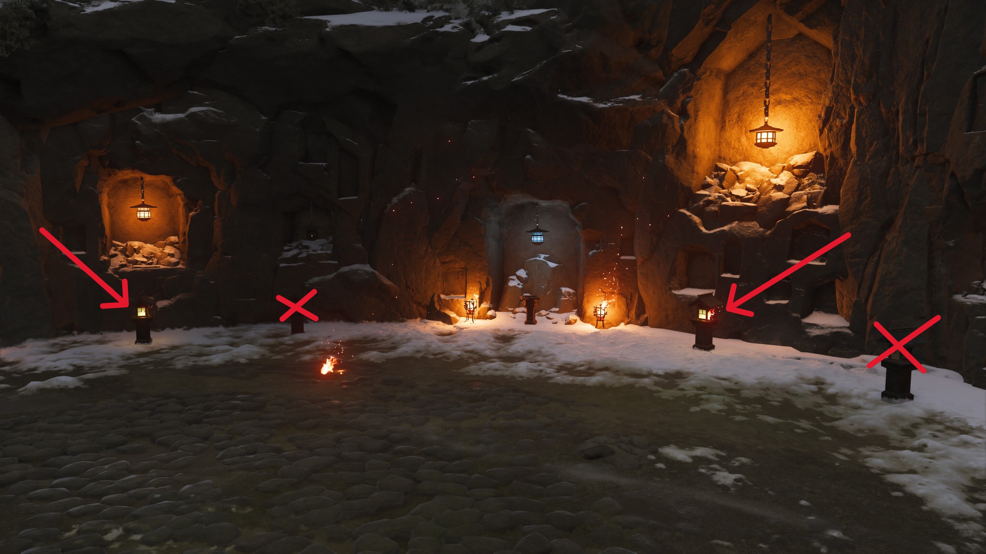 On the left side of the area, you’ll see a fire pit with a torch in it. Your task is to grab the torch and use it to light the braziers located behind a chain. These braziers already have a light source. If you accidentally light a brazier that shouldn’t be lit, just walk up to it to extinguish the flame. Here’s the order you need to light them, going from left to right: