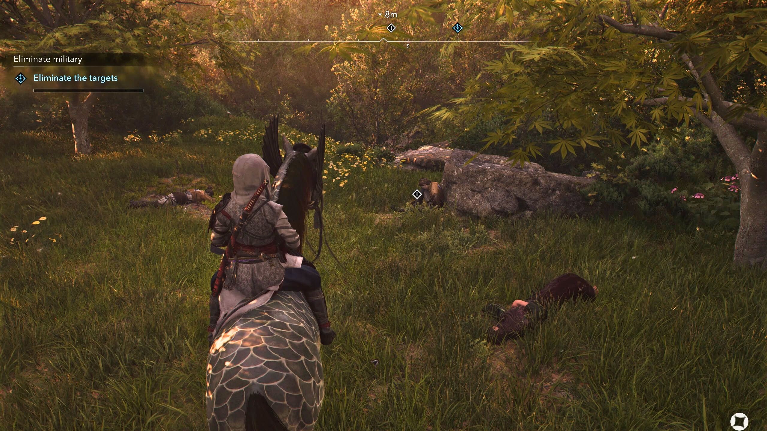 The fastest way to reach the quest’s starting point is to fast travel to Hanazono Castle. Once you arrive, jump down and follow the quest marker. You’ll find the bodies of fallen Survey Corps soldiers from Attack on Titan along the way.