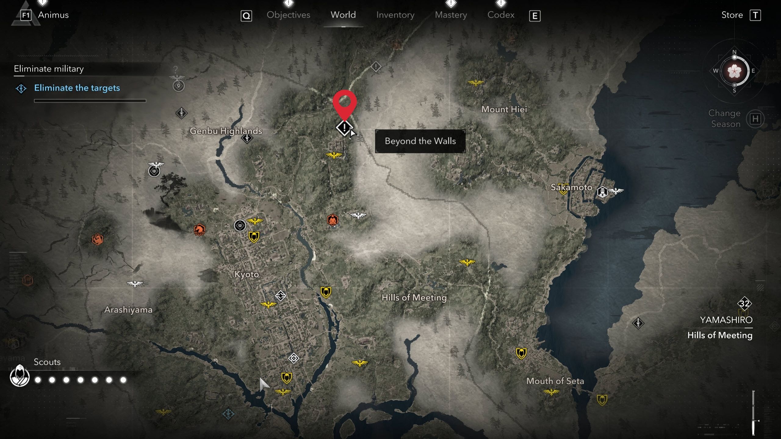 Once you’ve unlocked Yasuke in Assassin’s Creed Shadows, the “Beyond the Walls” quest—a special collaboration with Attack on Titan—will become available. If you’ve already unlocked Yasuke, find the quest marker for “Beyond the Walls” in the Yamashiro region. This area is located northeast of Kyoto and east of the Genbu Highlands.