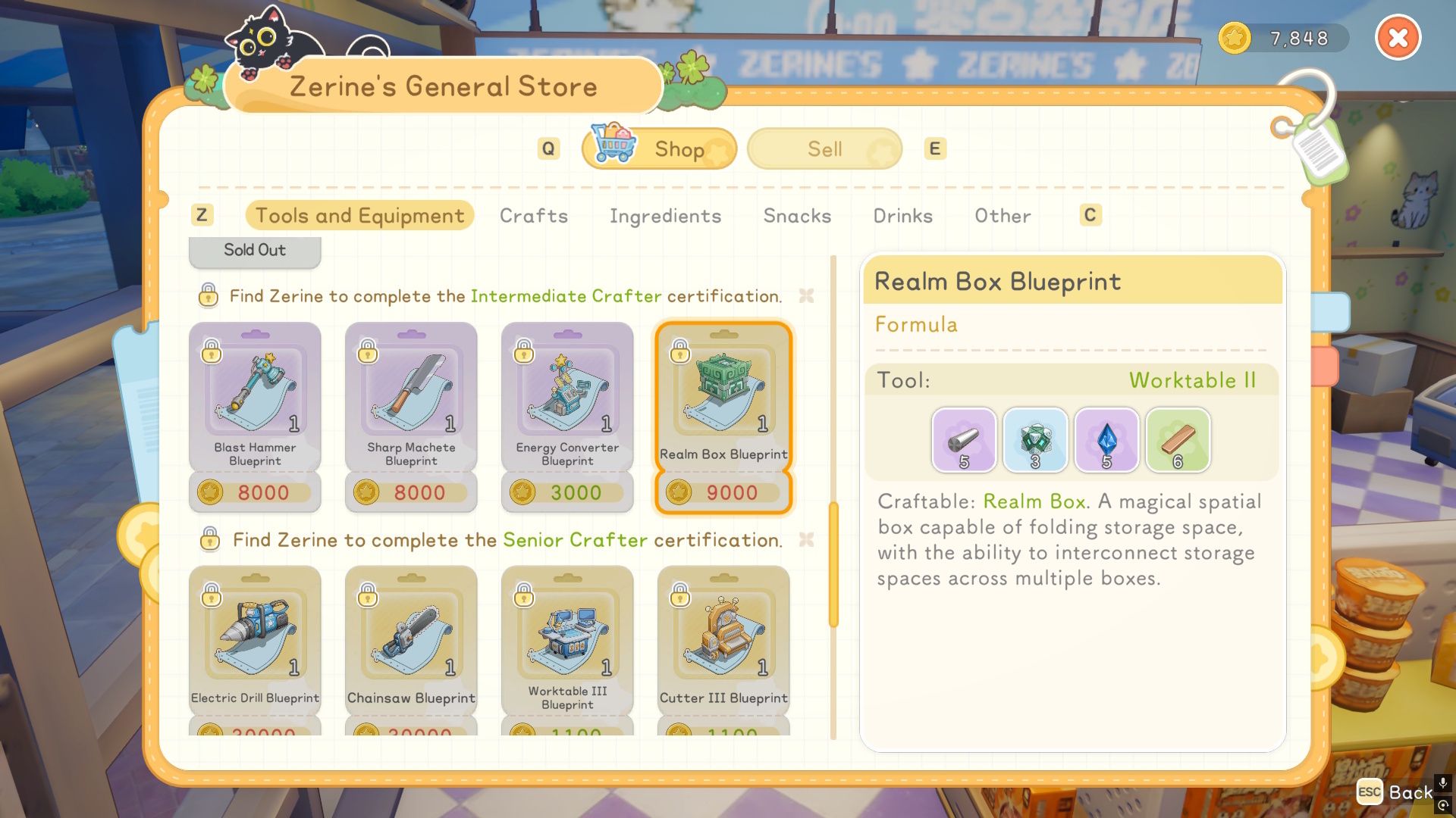 If you’re looking for extra storage, especially in Starsand Island, a Realm Box is the best option. It links all your Storage Boxes together for easy access. However, it’s more of a long-term solution. You’ll need to become an Intermediate Crafter and purchase the blueprint from Zerine’s General Store before you can start building one, and it requires some advanced materials to craft.