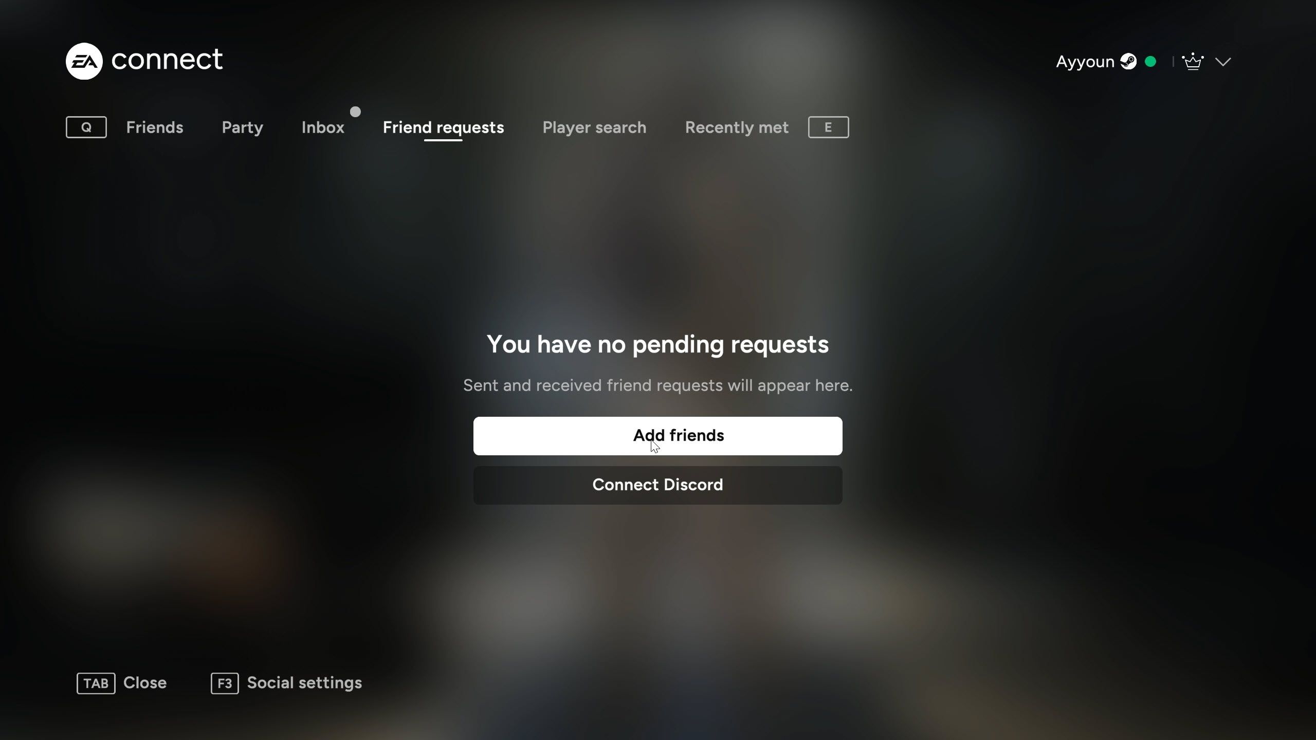 On a computer, just click the “Friend Requests” tab. If you’re playing on a console, use the RT button (Xbox) or R2 button (PlayStation) to open the Connect menu. Then, use the LB/RB buttons (Xbox) or L1/R1 buttons (PlayStation) to find and click the “Add Friends” button.