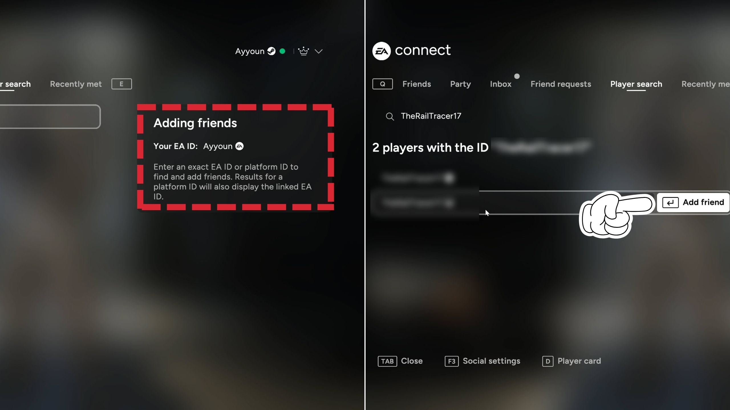 When you go to the “Add Friends” menu, you’ll see a small box on the right displaying your EA ID. Share this ID with your friends – even if they’re on a different platform – so they can add you as a friend.