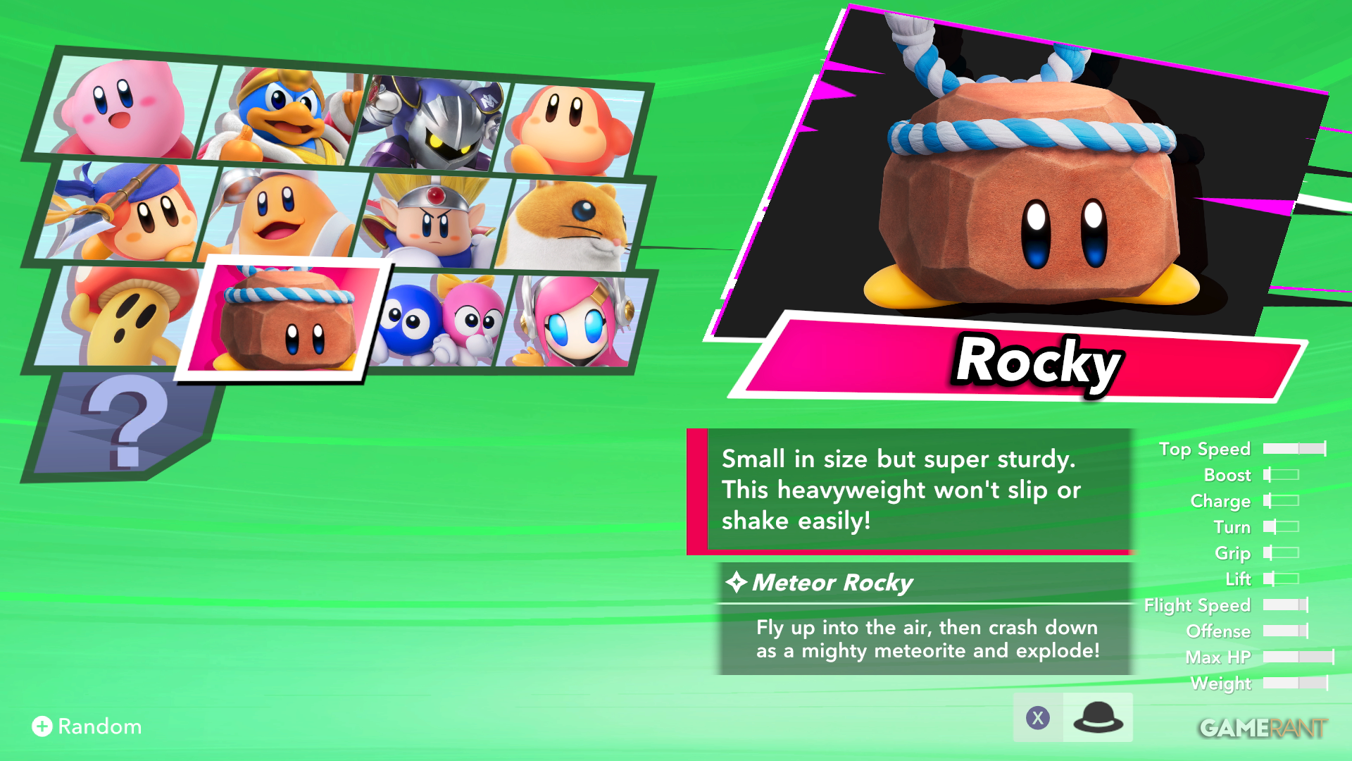 During Road Trip, open a treasure chest to unlock Rocky as a playable character in Kirby Air Riders. Alternatively, you can unlock him by using 30 items total in Top Ride.