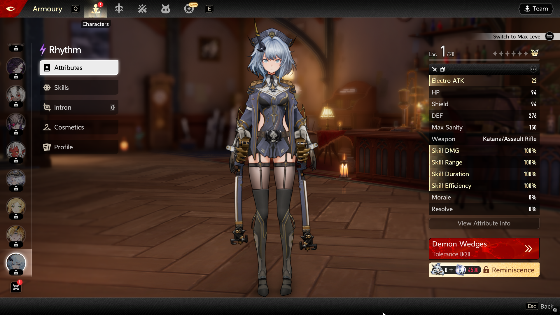 After gathering 30 Thoughts for a character, you can unlock them using Reminiscience. Go to the Armoury screen, hover over the character you collected Thoughts for, and click the button in the bottom-right corner. Any extra Thoughts you have can be used to unlock Intron bonuses, which function similarly to duplicate characters in many gacha games.