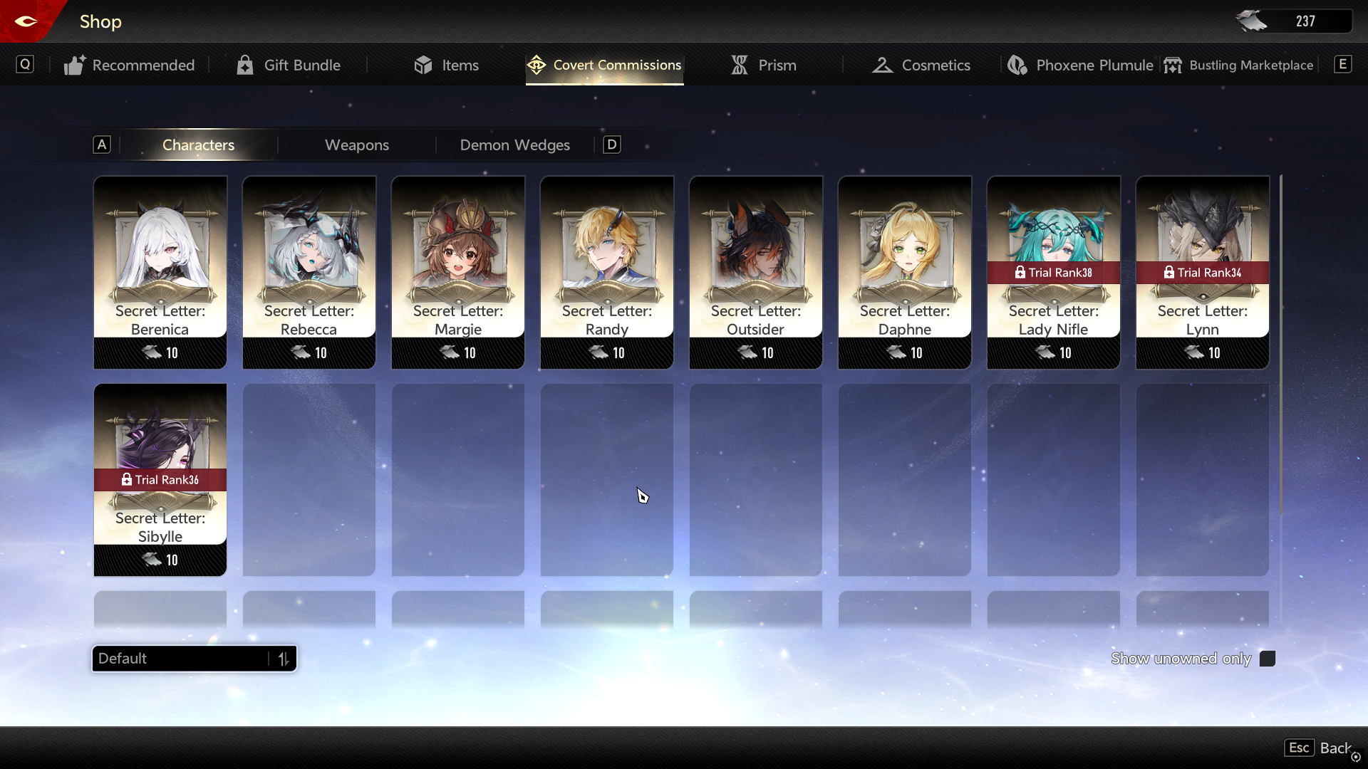 - Use Secret Letter Clues to buy character-specific Secret Letters from the shop.