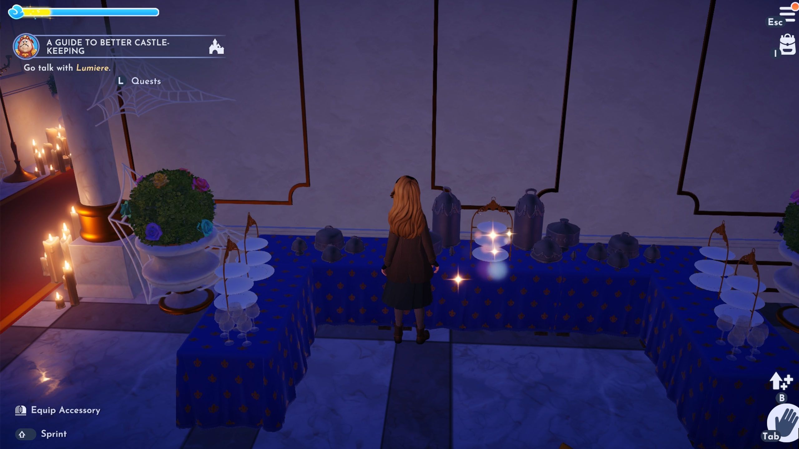 First, go to the garden and find the cellar door by the entrance to pick up the Cutlery Sets. Then, bring them back and set them on the table near the piano. After that, speak with Lumiere, and he’ll ask you to create a Charcuterie Board by gathering ingredients throughout the castle.