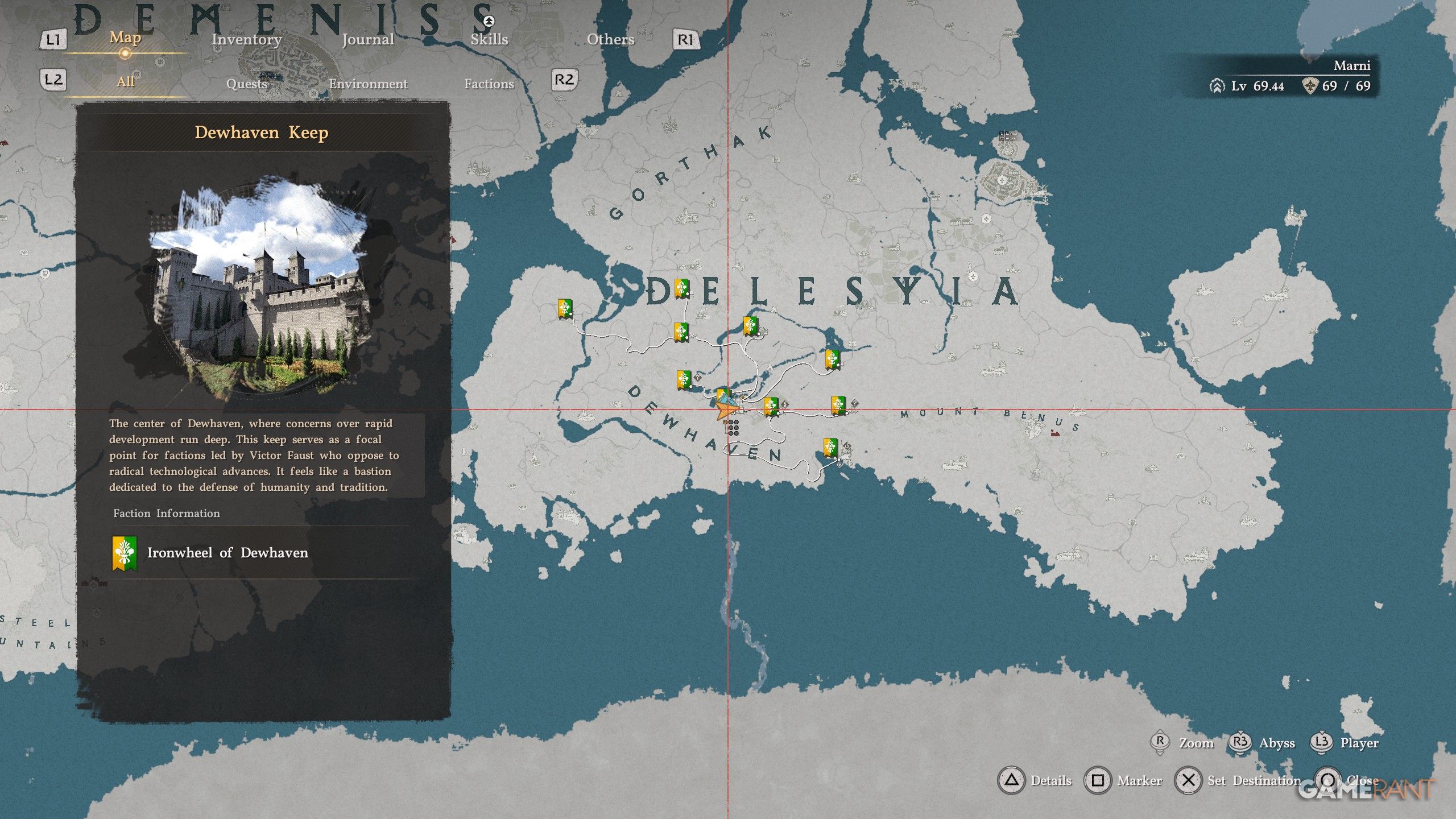 - Select Triangle/Y when hovering over Marni’s Steel Armory on the map and press R1/RB to reach the “Missions” tab.