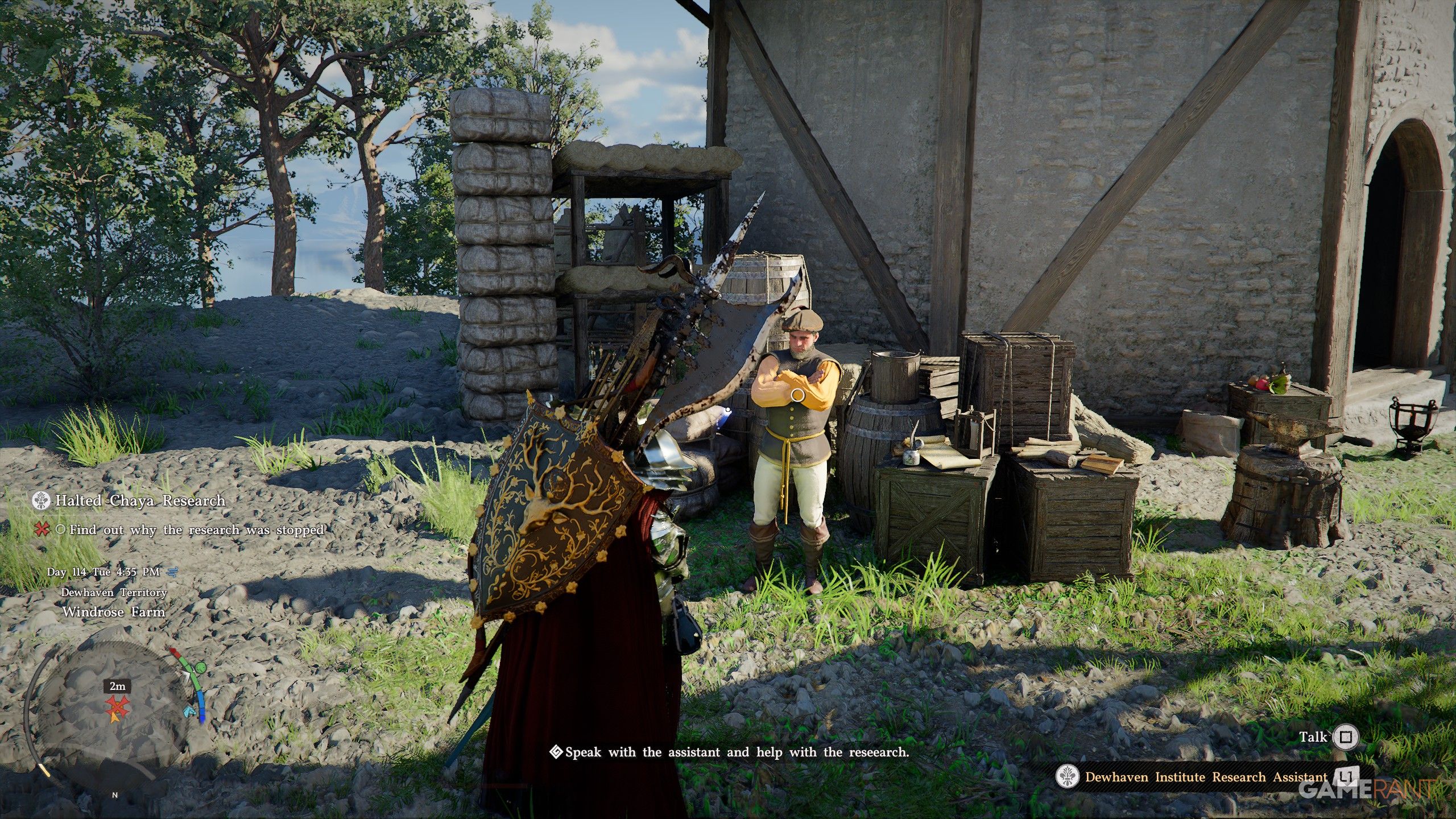 - To resume the research, speak with the Dewhaven Institute Research Assistant at the Windrose Farm (shown above).
