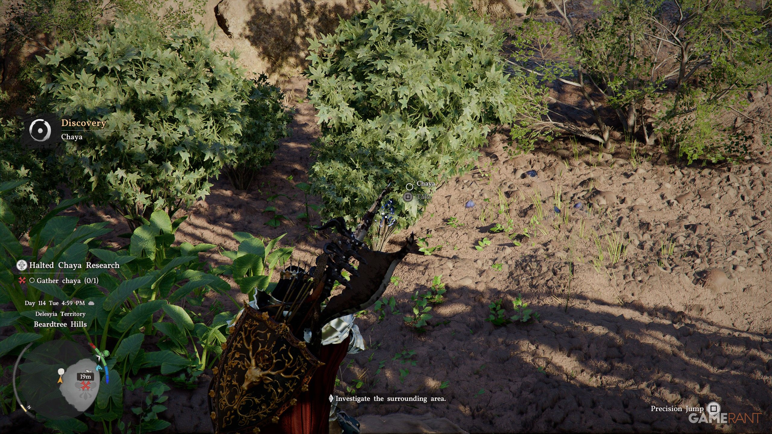 - You will now need to collect x1 Chaya, which can be collected from the area shown above in the Beardtree Hills. Alternatively, you can purchase Chaya Seeds from the Grocer in the City of Pailune and grow them in your Camp’s garden.