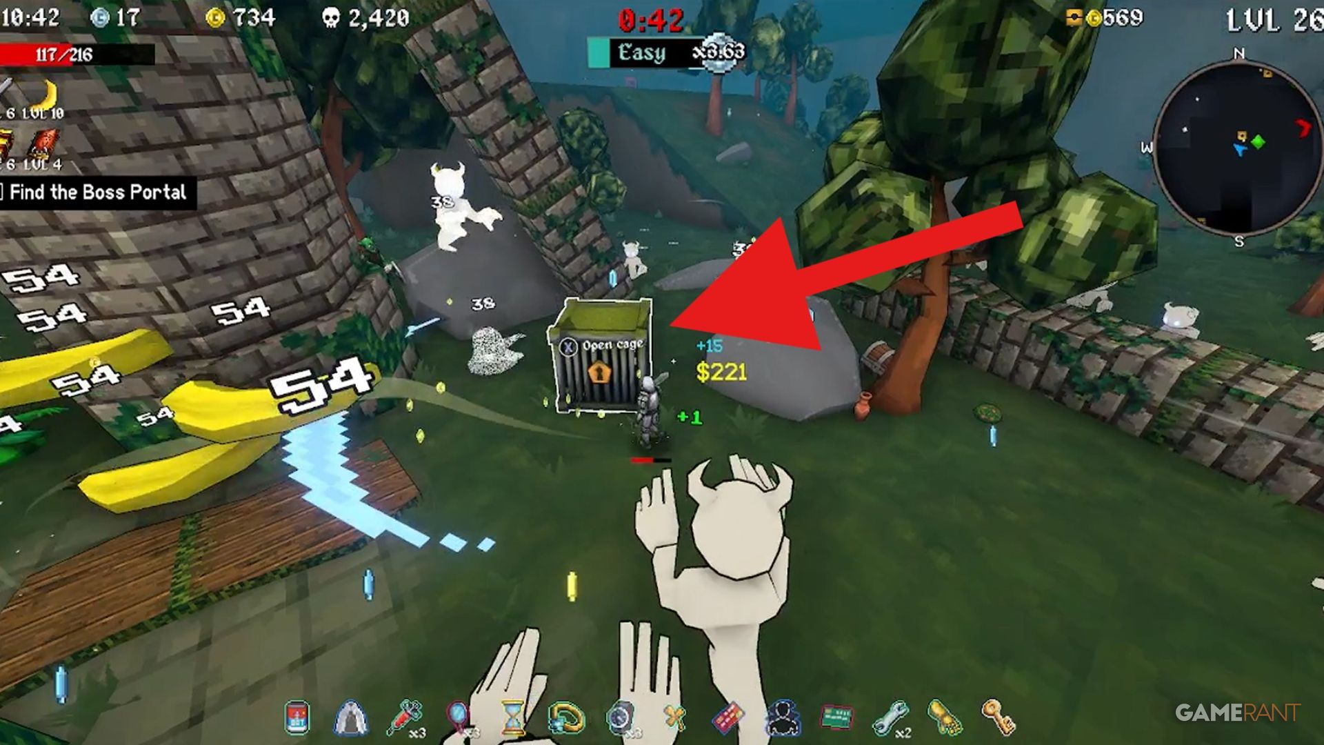 The tricky thing is that Monke won’t show up on the map, so after you get the key, you’ll have to quickly run, jump, and slide around the Forest to locate it. Keep in mind the cage is quite small, making it hard to spot right away. Also, the cage doesn’t always appear on the map.
