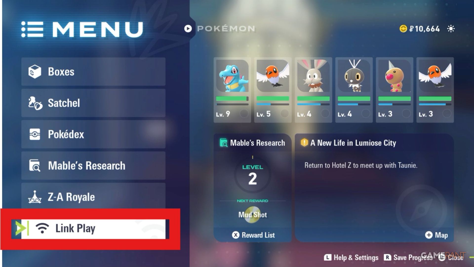 Once you’ve finished talking to her, a new option called Link Play will appear in the main menu, located just below Z-A Royale. From the Link Play menu, you can trade Pokémon and battle others playing *Pokémon Legends Z-A* – both locally and online. You can also find Ranked and Private battles, and access the Mystery Gift feature.