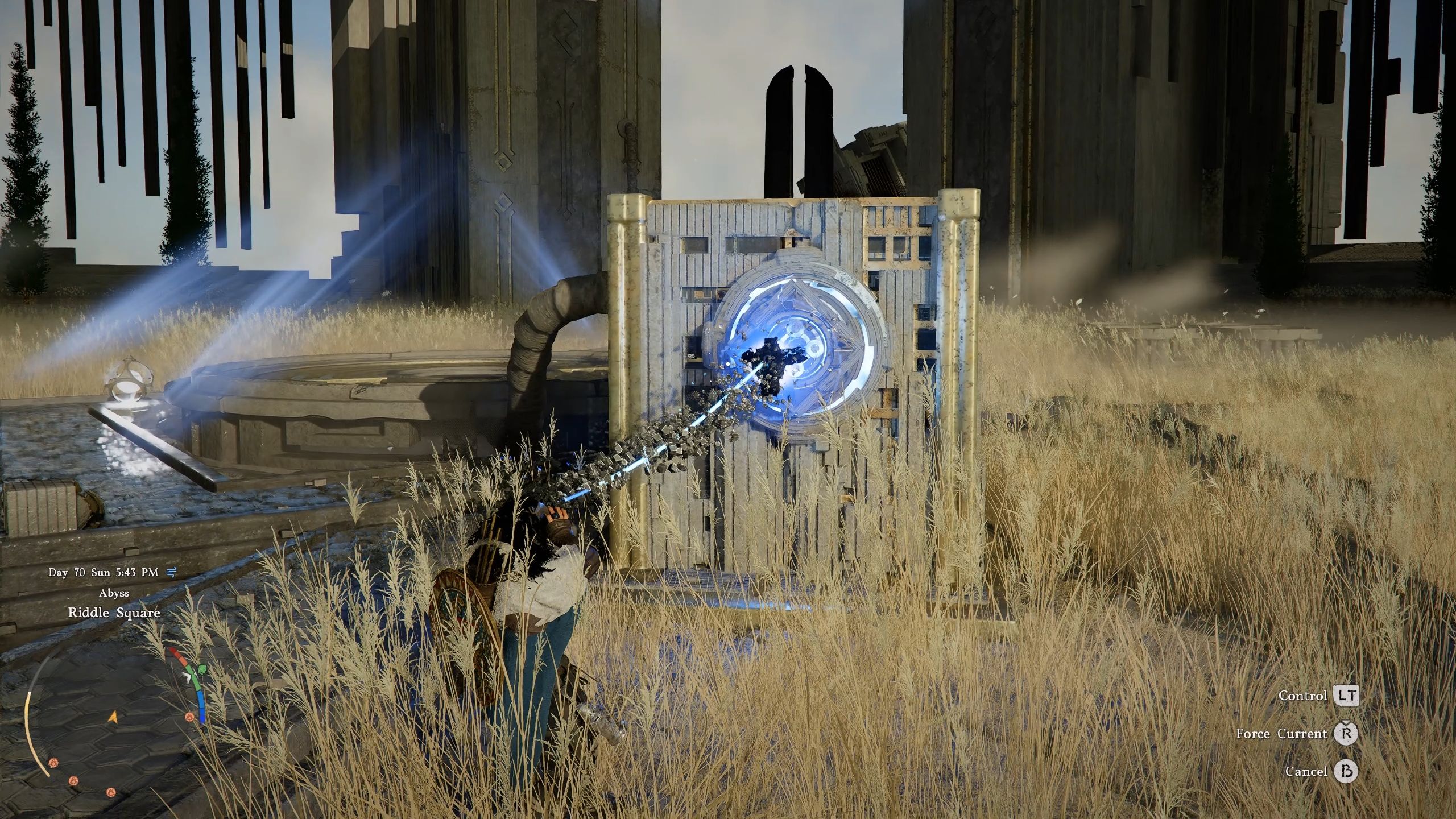 The Riddle Square is the first puzzle you’ll encounter in the Wanderer’s Way Abyss area of Crimson Desert. After being teleported here from the Spire of Clockwork puzzle, you need to walk down the hallway and connect the Axiom Force to the panel to turn on the big fan.