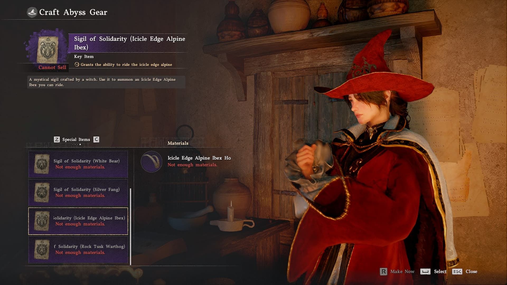After defeating Moren, visit any witch’s hut in the Crimson Desert and talk to the witch. Choose the “Craft Abyss Gear” option, and then switch to the “Special Items” tab. There, you’ll be able to craft a Sigil of Solidarity using the Icicle Edge Alpine Ibex Horn you received from Moren. Craft the sigil, and then use it from your inventory to unlock the Ibex mount.