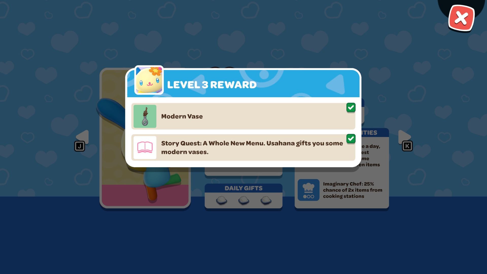You can begin the “A Whole New Menu” quest by becoming friends with Usahana and raising your friendship level to 3. Once you reach Level 3, she’ll give you a Modern Vase, which will start the quest.
