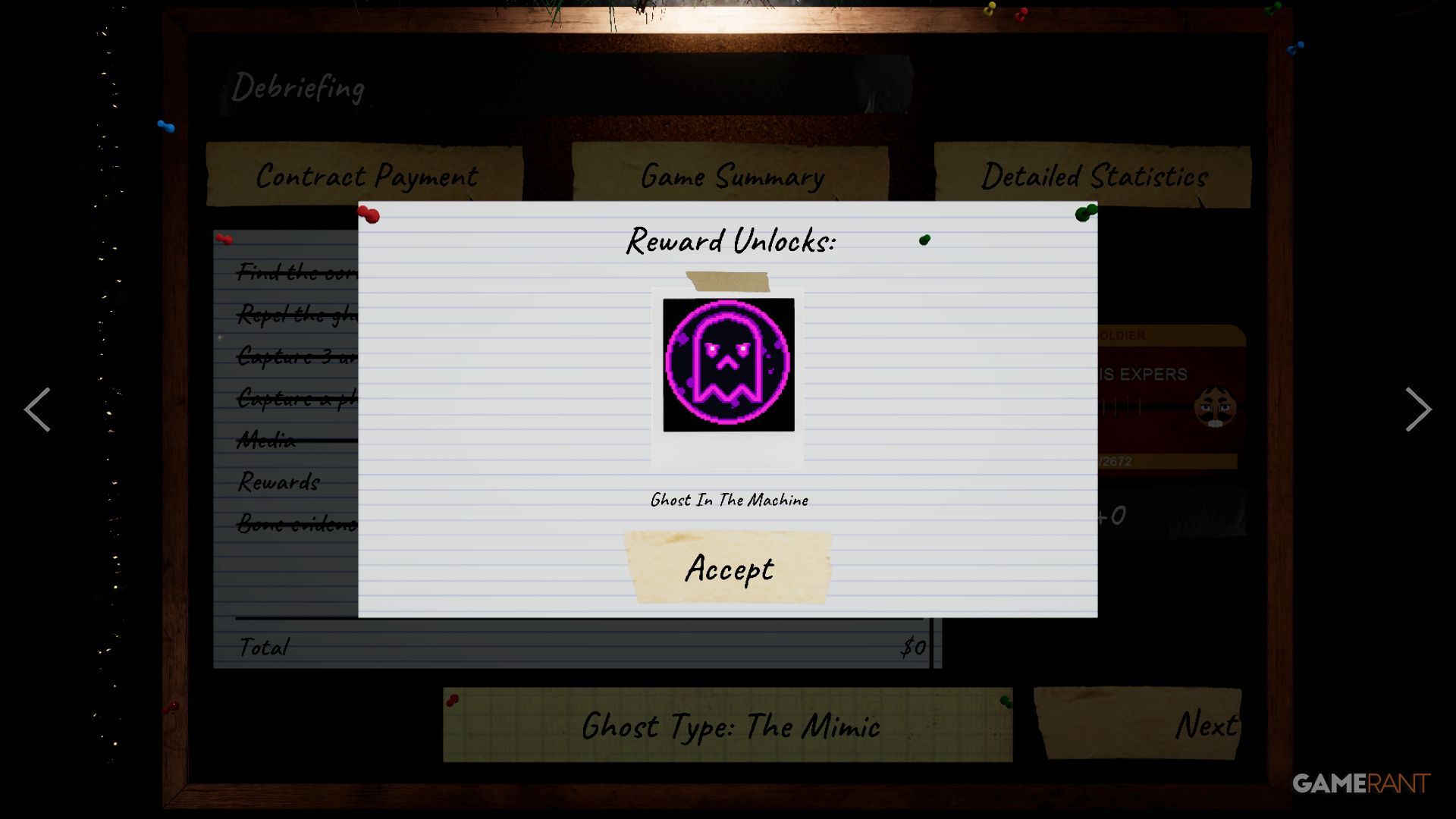 Once players finish the contract, they’ll receive a message saying they’ve unlocked the Ghost in the Machine ID Card in Phasmophobia, which finishes the Nell’s Diner Easter egg.