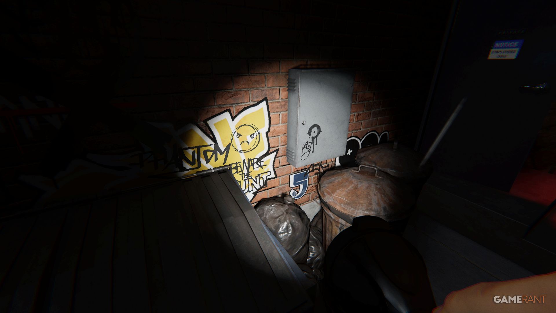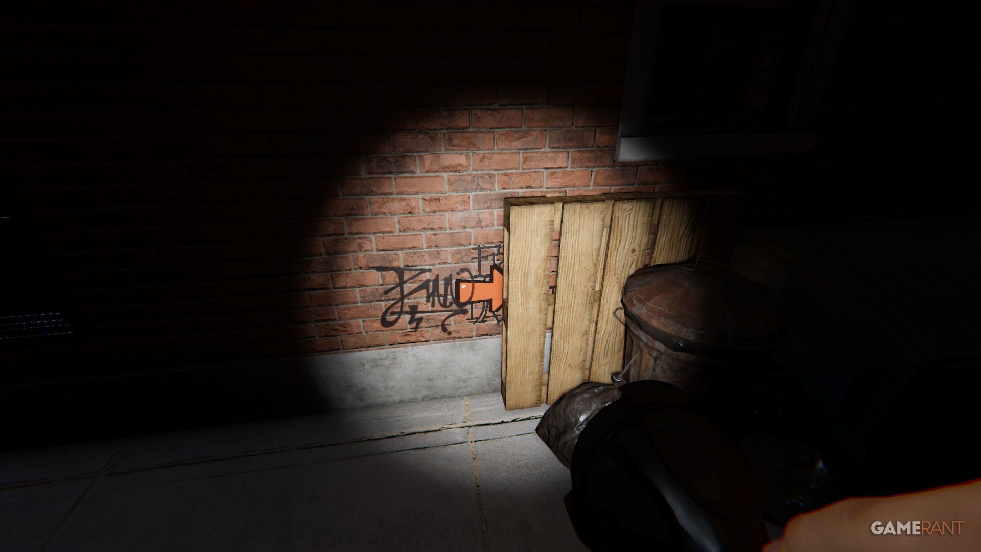 You’ll find a right arrow painted on the wall next to the diner. Follow the arrow past some trash cans, and it will lead you to the number 5.