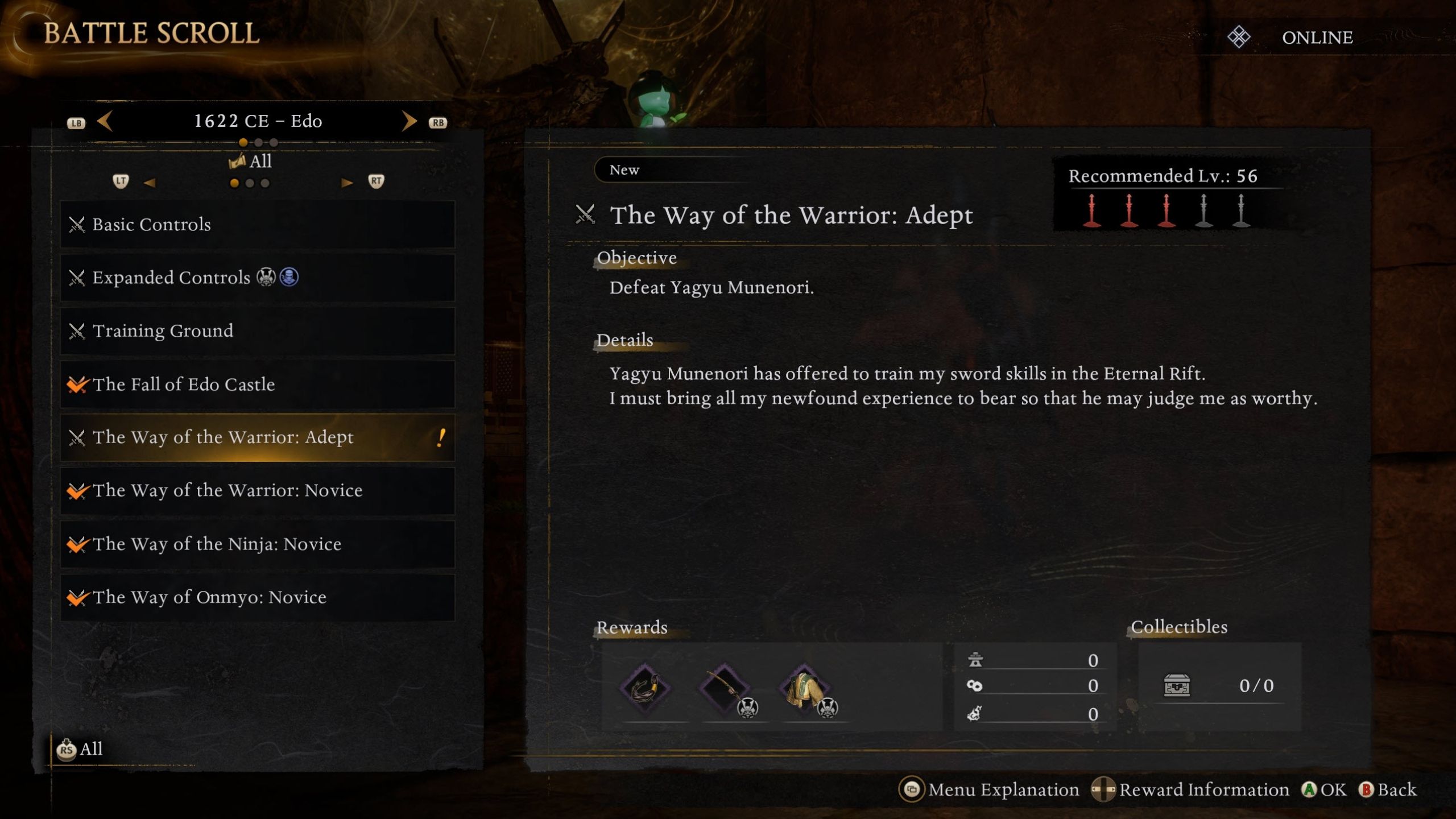 The ‘Way of the Warrior: Adept’ quest becomes available after players progress to the Heian era and defeat the boss Takeda Shingen. In this quest, Takechiyo will face off against Yagyu Munenori in a practice duel.