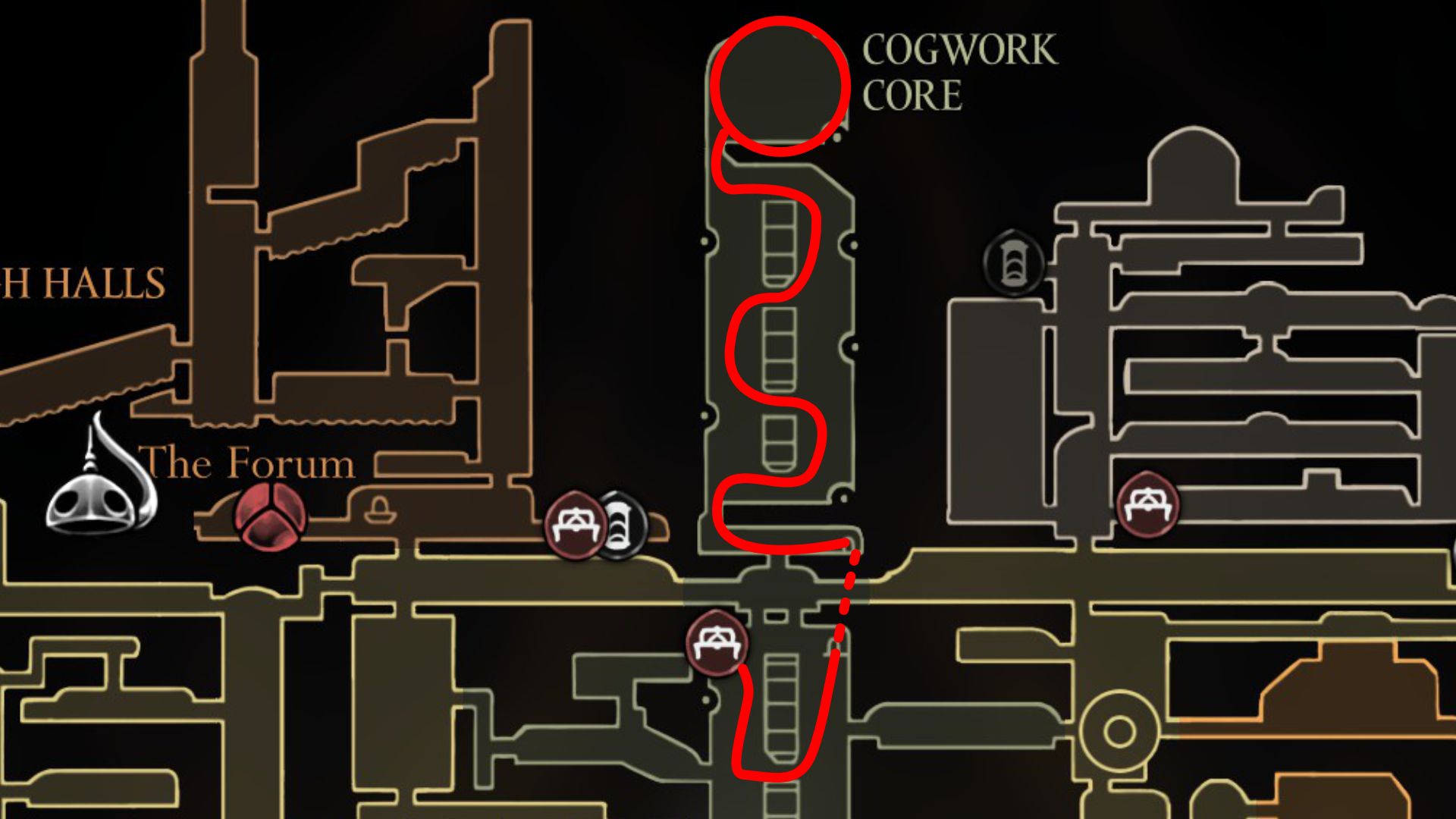 Locate the doorway to escape, and you’ll be positioned in the upper part of the Cogwork Core. Utilize all your agility, swift strikes, and Clawline technique to navigate effectively to the upper-left corner of this chamber successfully.