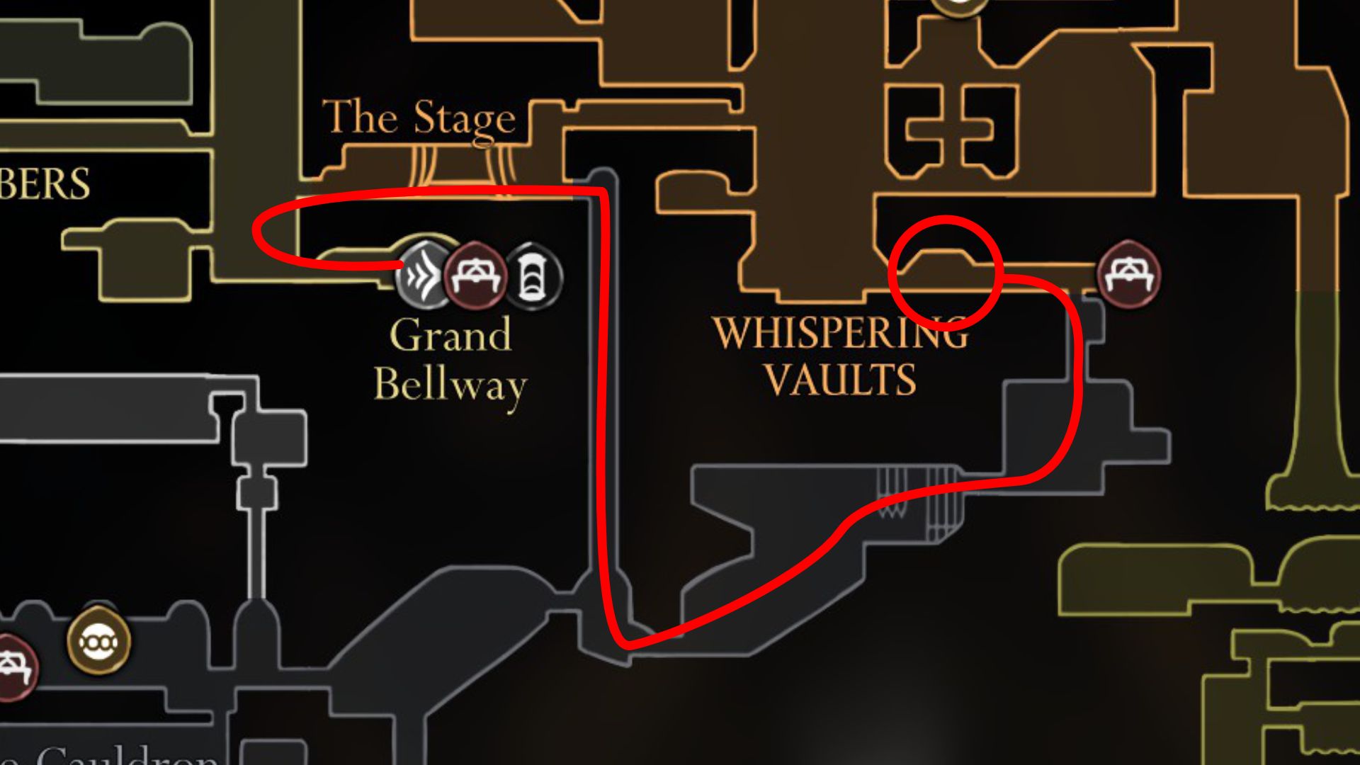 Upon descending into the room below, head to your right where you’ll find a bench. After that, move to your left to discover a shortcut leading back to the Choral Chambers, and proceed further to the left from there.
