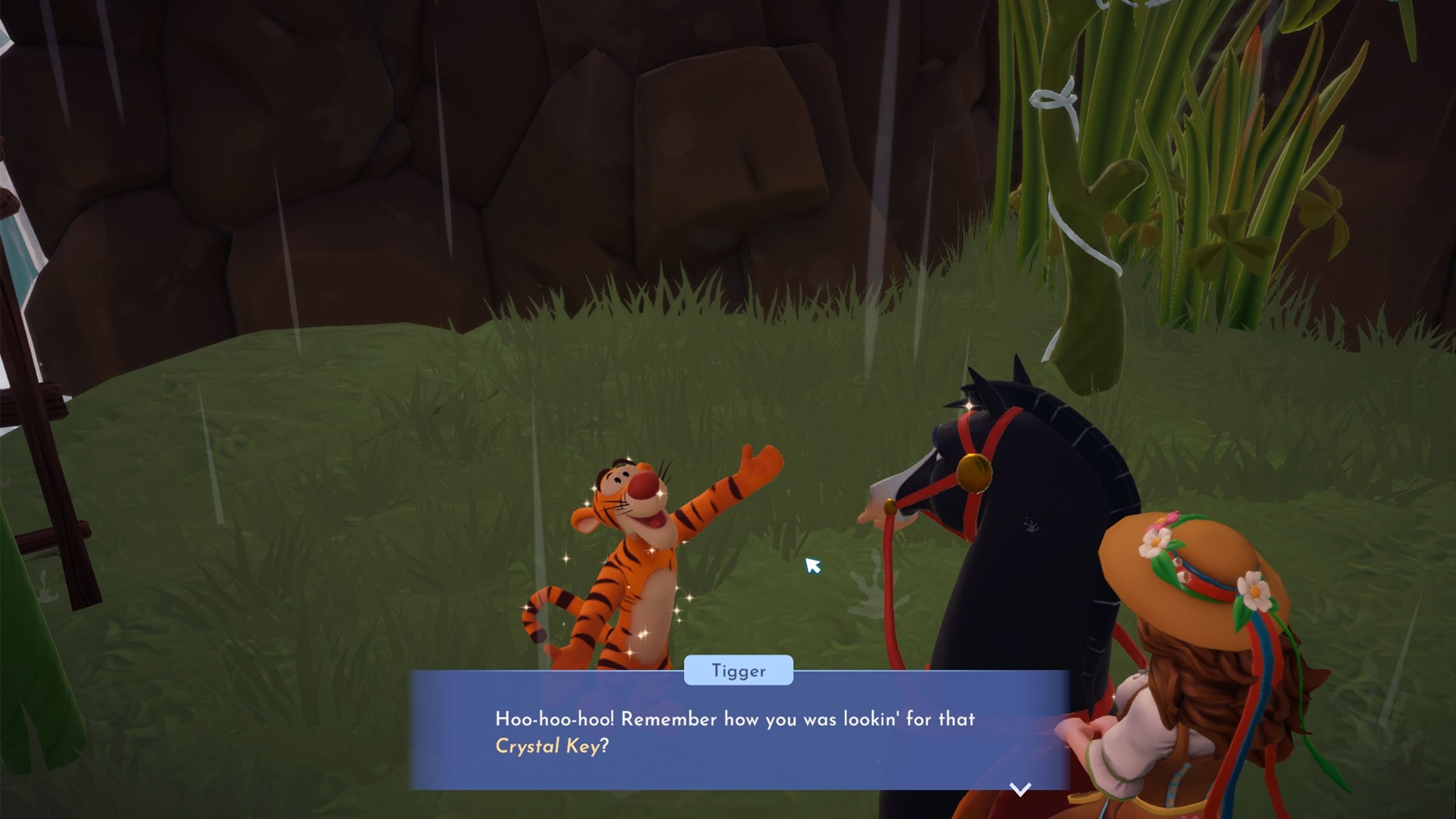 Once you’ve finished the necessary preparations, the Fun! Fun! Fun! quest will begin. Talk to Tigger – he’s eager to guide you to where the Crystal Key is hidden.