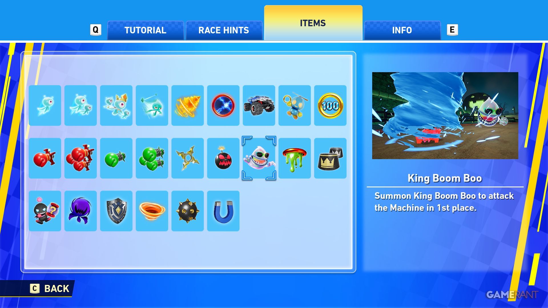 King Boom Boo soars ahead of the leader and unleashes a massive blue wave, causing them to spin out of control. This attack can also affect other nearby racers, making it perfect for disrupting the frontrunners. Only a shield can protect against it.