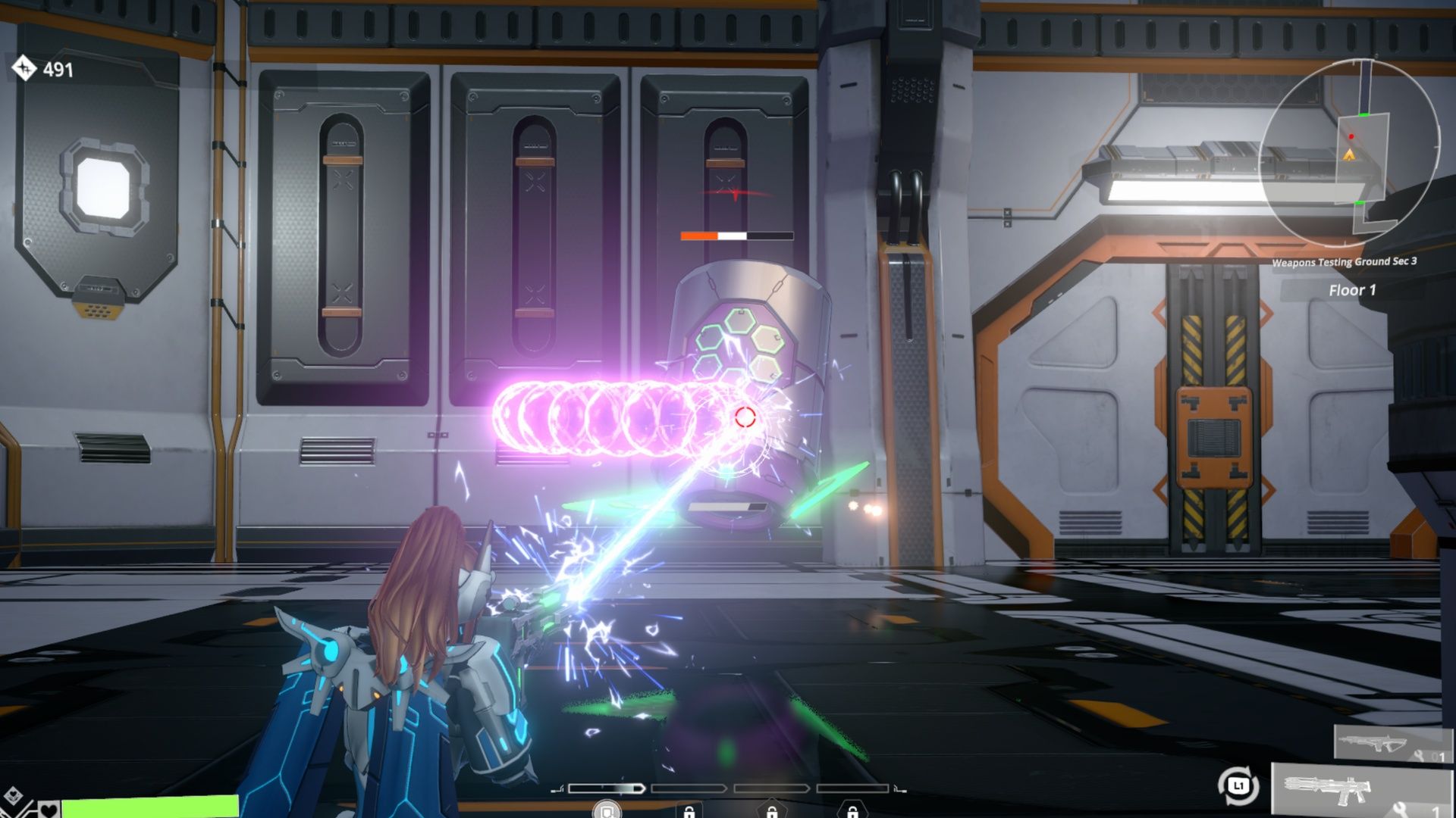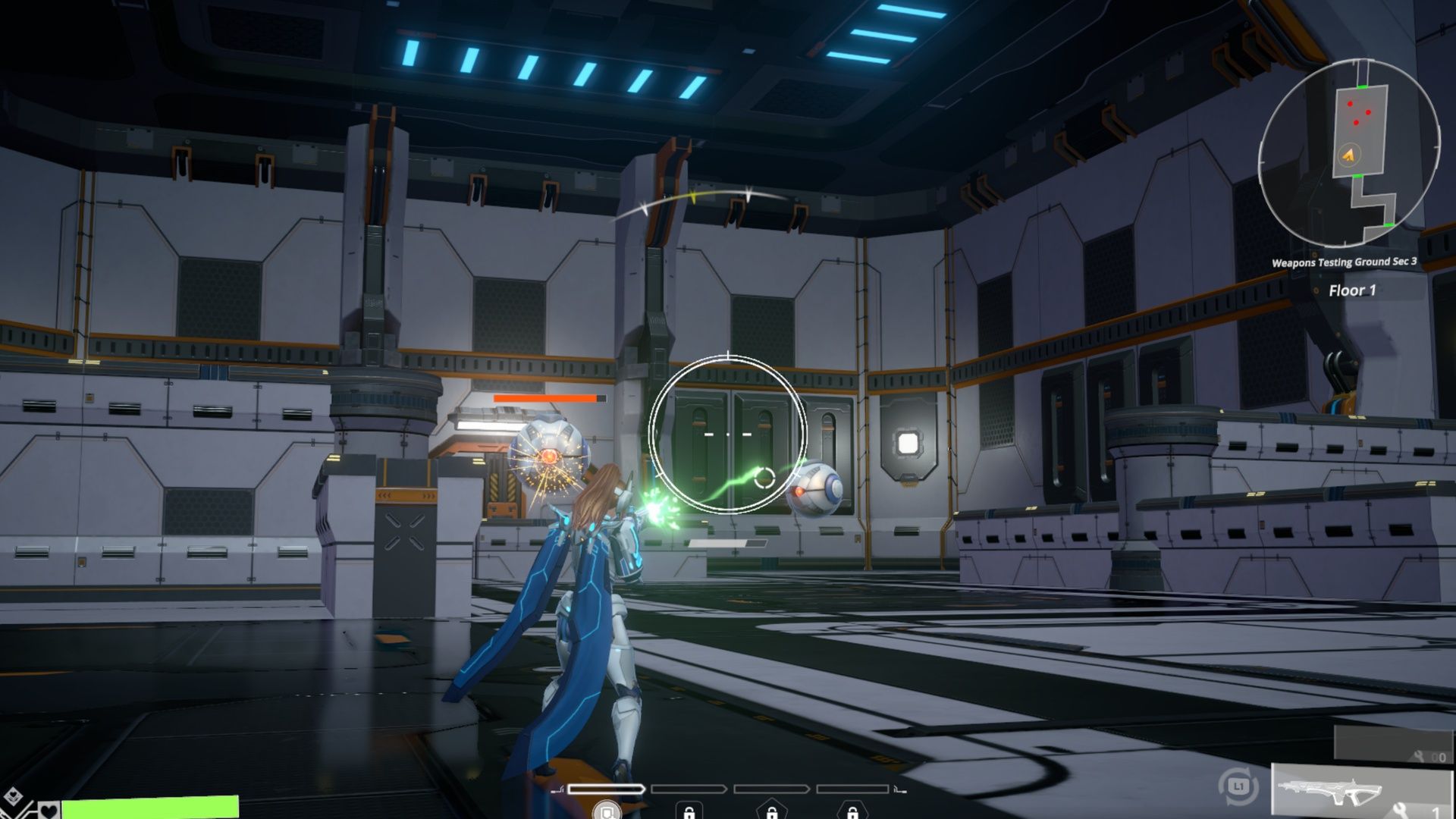 Developed by the team behind the Hyperdimension Neptunia series, Scar-Lead Salvation is a new, fast-paced roguelike shooter. Instead of the typical turn-based gameplay of their other titles, this game puts you in control of a robotic woman who doesn’t remember her past. You’ll explore randomly generated levels filled with robots, navigating through corridors and rooms. While the character moves smoothly, some animations feel a little unnatural. Players can also jump and dash to avoid enemies and obstacles.