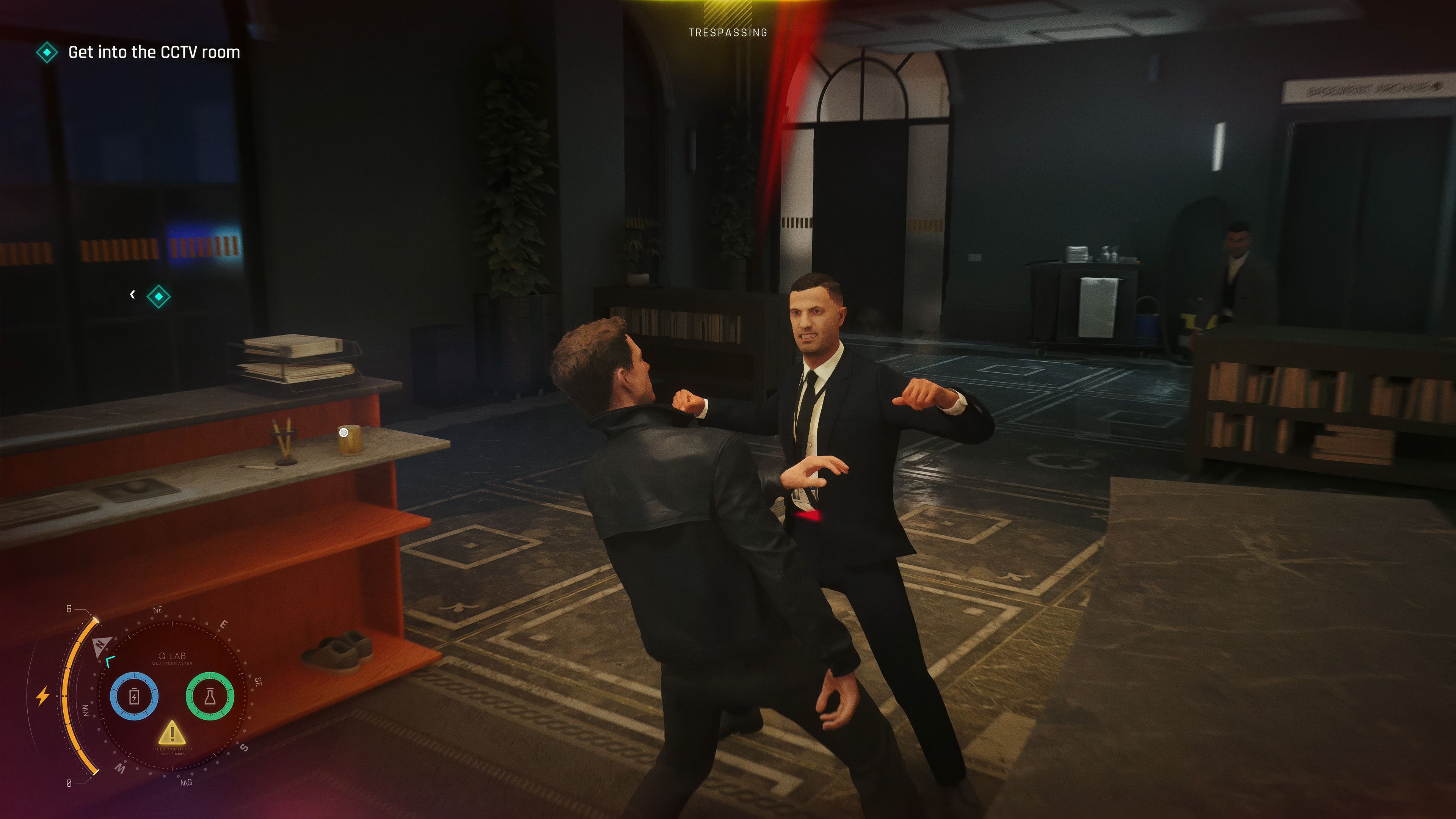 The hand-to-hand combat in First Light is impactful and feels great – every hit has weight. You can see damage to the surroundings when enemies collide with objects, and you can even use loose items like coffee cups or bricks as weapons. It truly feels like a rough, desperate fight where James Bond will do whatever it takes to win. However, enemies can easily overpower Bond if you’re not precise and careful, so staying alert is crucial. Plus, triggering an alarm and attracting a room full of guards is a risky move.