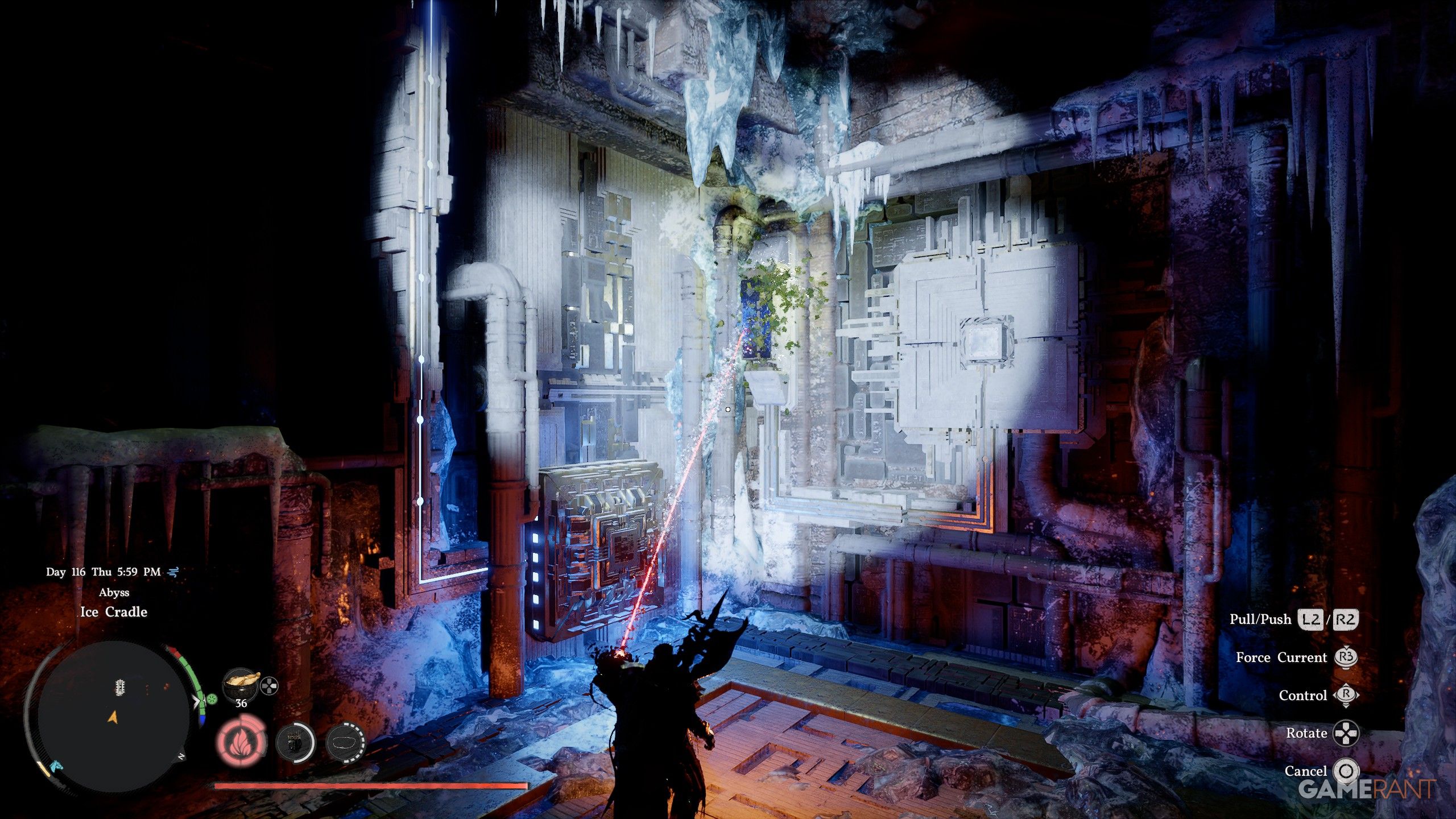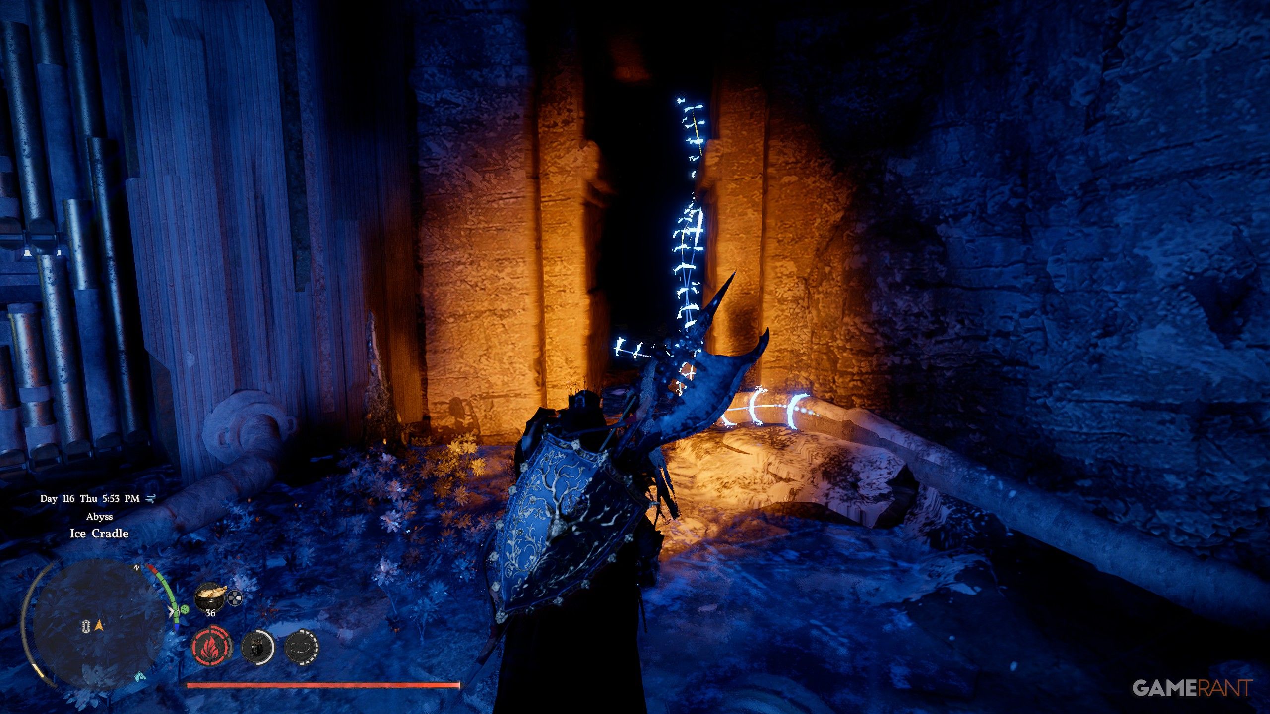 You can keep going through the Ice Cradle Abyss, and eventually you’ll find a teleporter that leads to the Root’s End Ruins. If you get stuck, we have a solution to the puzzle there to help!