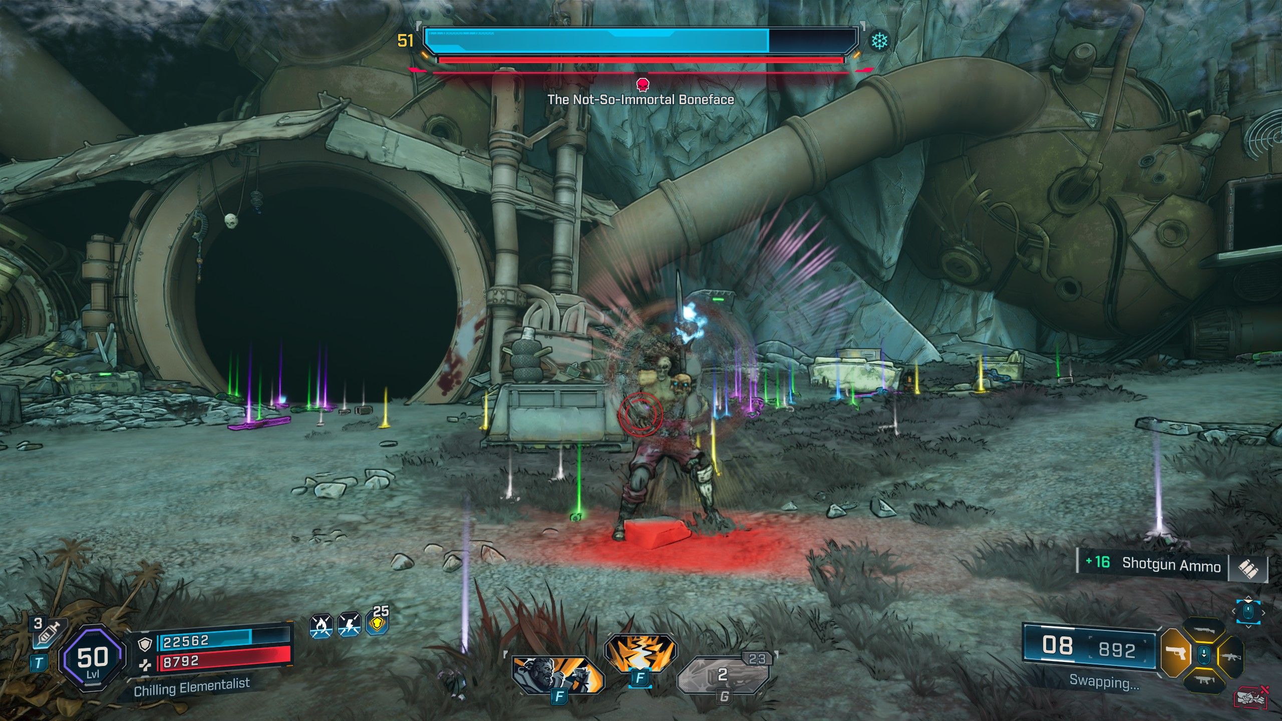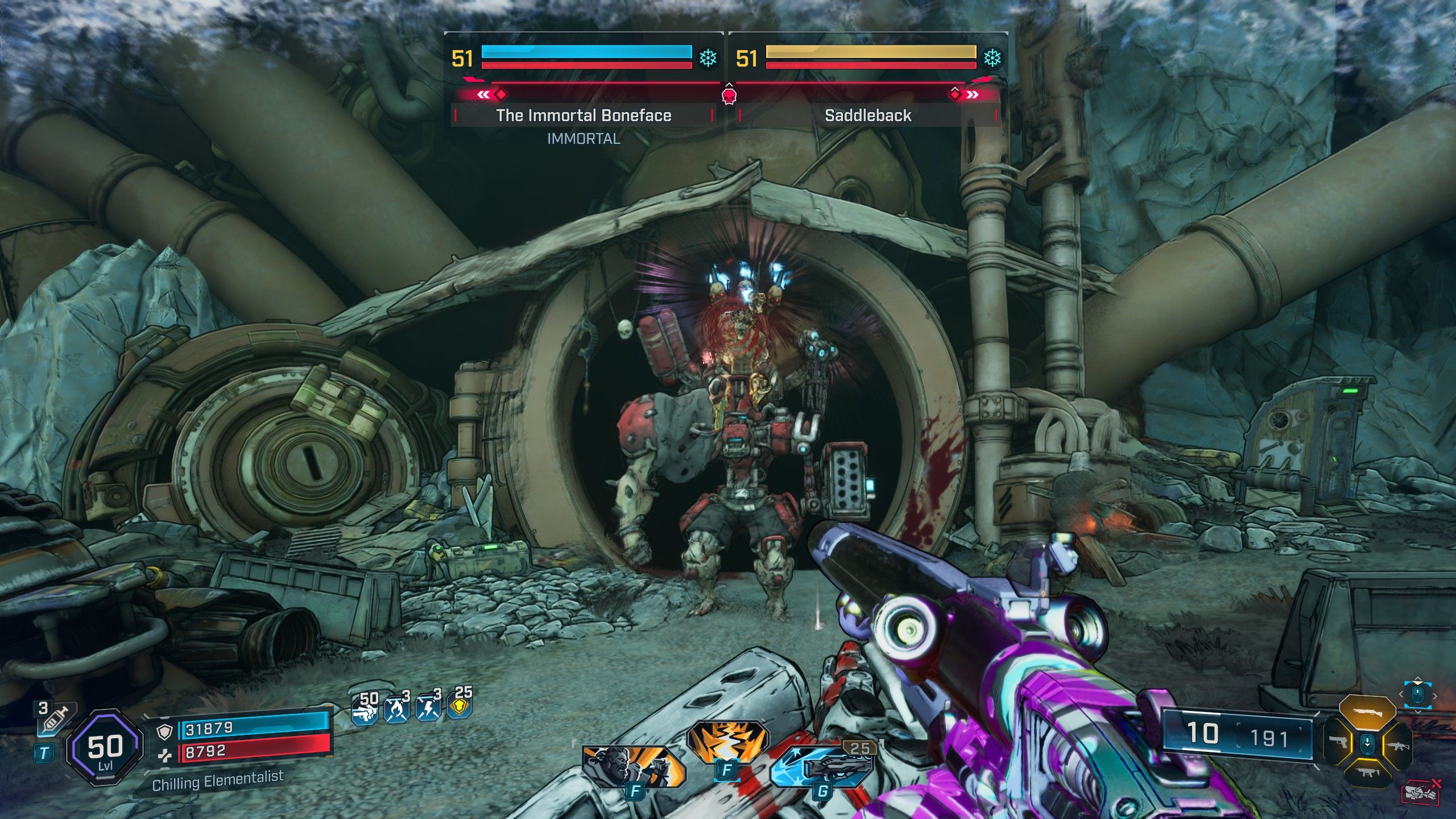 To defeat the Immortal Boneface, you’ll first need to eliminate Saddleback, who is concealing the path to the final boss. Saddleback is a powerful Meathead with two health bars. His initial health bar is Armor, making Corrosive and Cryo weapons effective. Once that’s depleted, his second health bar, Flesh, is vulnerable to Incendiary damage. After defeating Saddleback, the Immortal Boneface becomes less formidable. His first health bar is Shield, so use Shock weapons. His second health bar is also Flesh, meaning Incendiary will again be your best choice to finally bring him down.