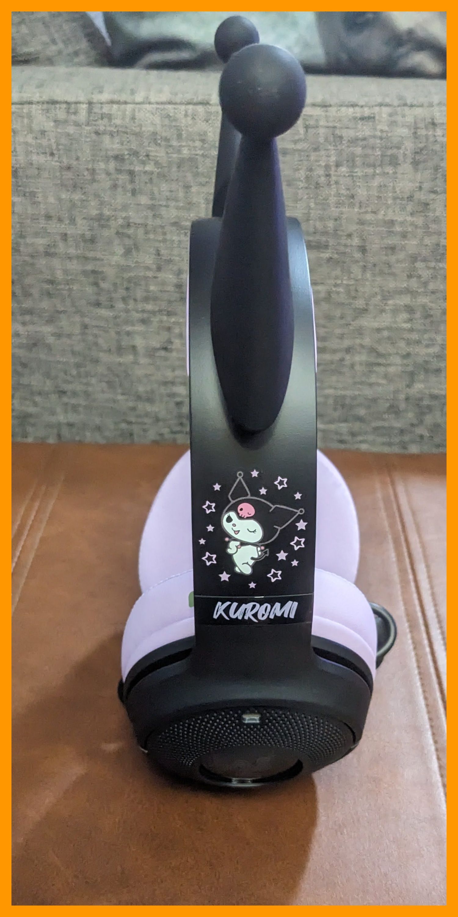 Among the standout aspects of the Kuromi wireless headset is the pair of curved accents resembling Kuromi’s ears, which are surprisingly robust despite being made from a soft velvety silicone material.