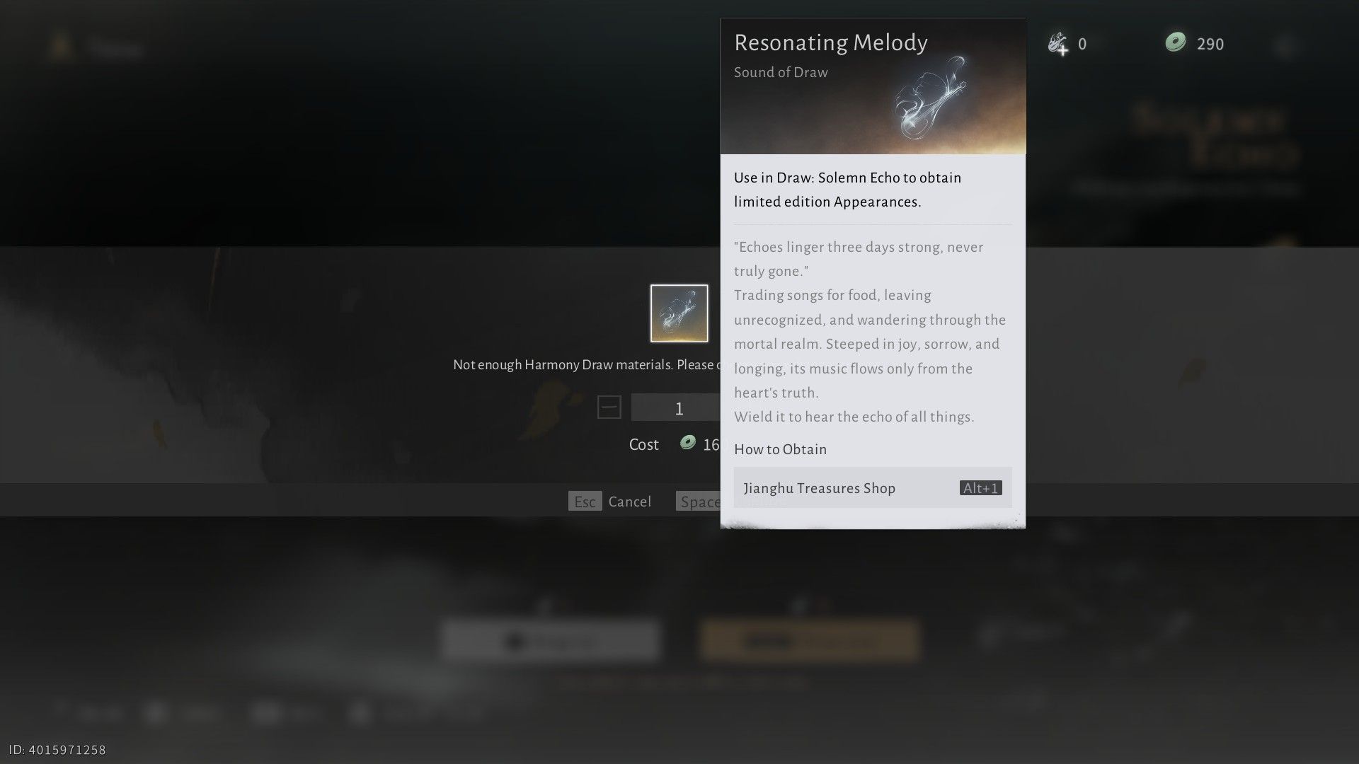 Okay, so I noticed in the Jianghu Treasures shop that Lingering Melodies are 200 Echo Jades, but Resonant Melodies are cheaper at just 160. Just a heads-up though – there’s a limit to how many Lingering Melodies you can actually buy, so keep that in mind!