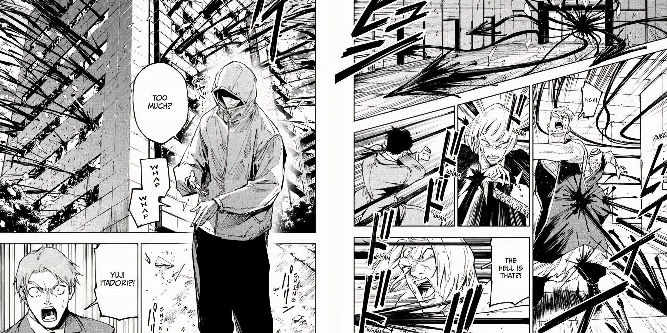 Image by Manga Plus - With Convergence, Yuji quickly takes on a building full of sorcerers