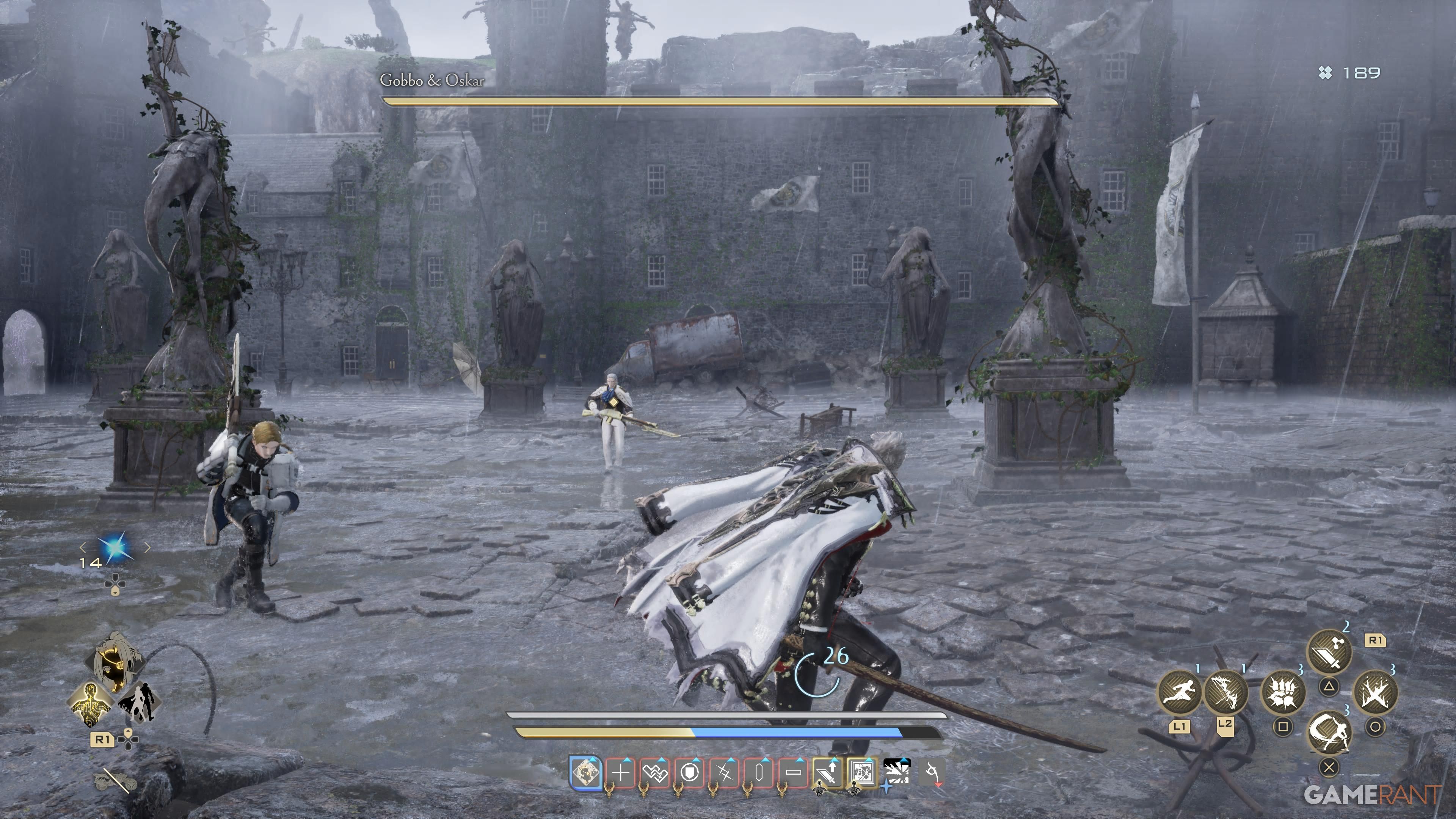 You’re now facing both opponents simultaneously. The second part of this battle is very challenging, especially due to Gobbo’s attacks. These attacks inflict Luna Rapacis, preventing you from healing or receiving support from your ally.