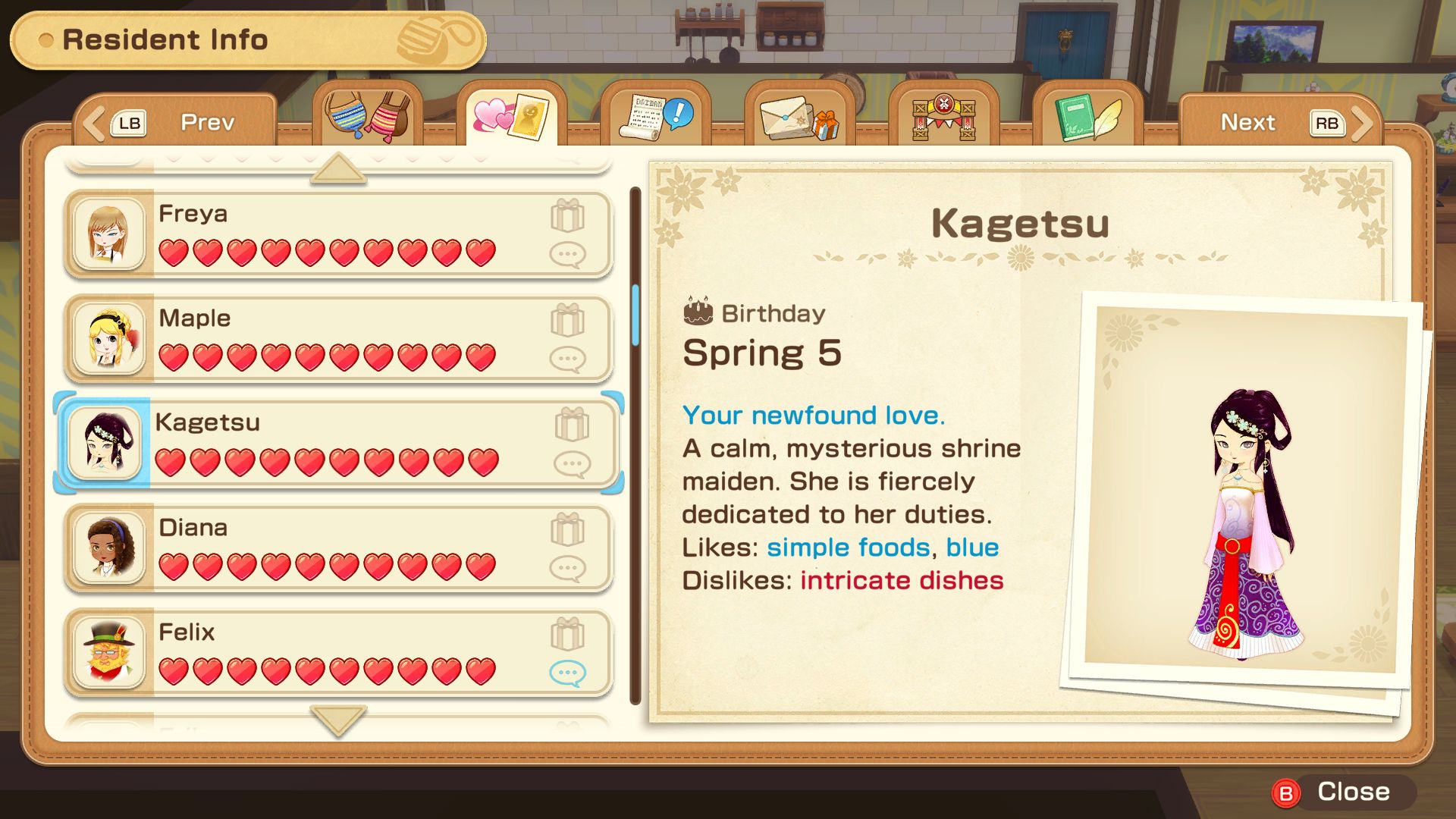 Kagetsu Friendship Overview In Story of Seasons: Grand Bazaar