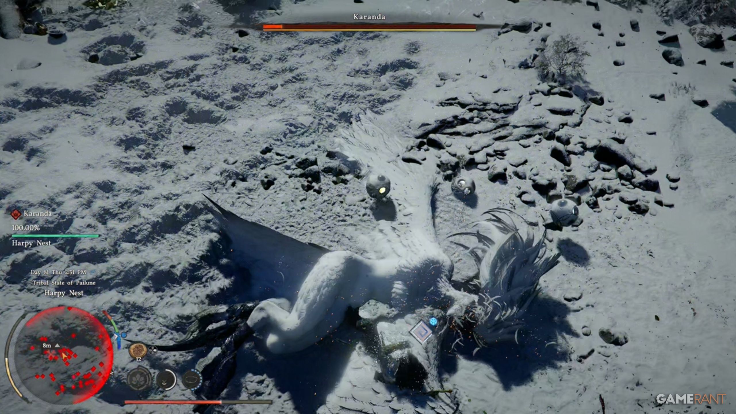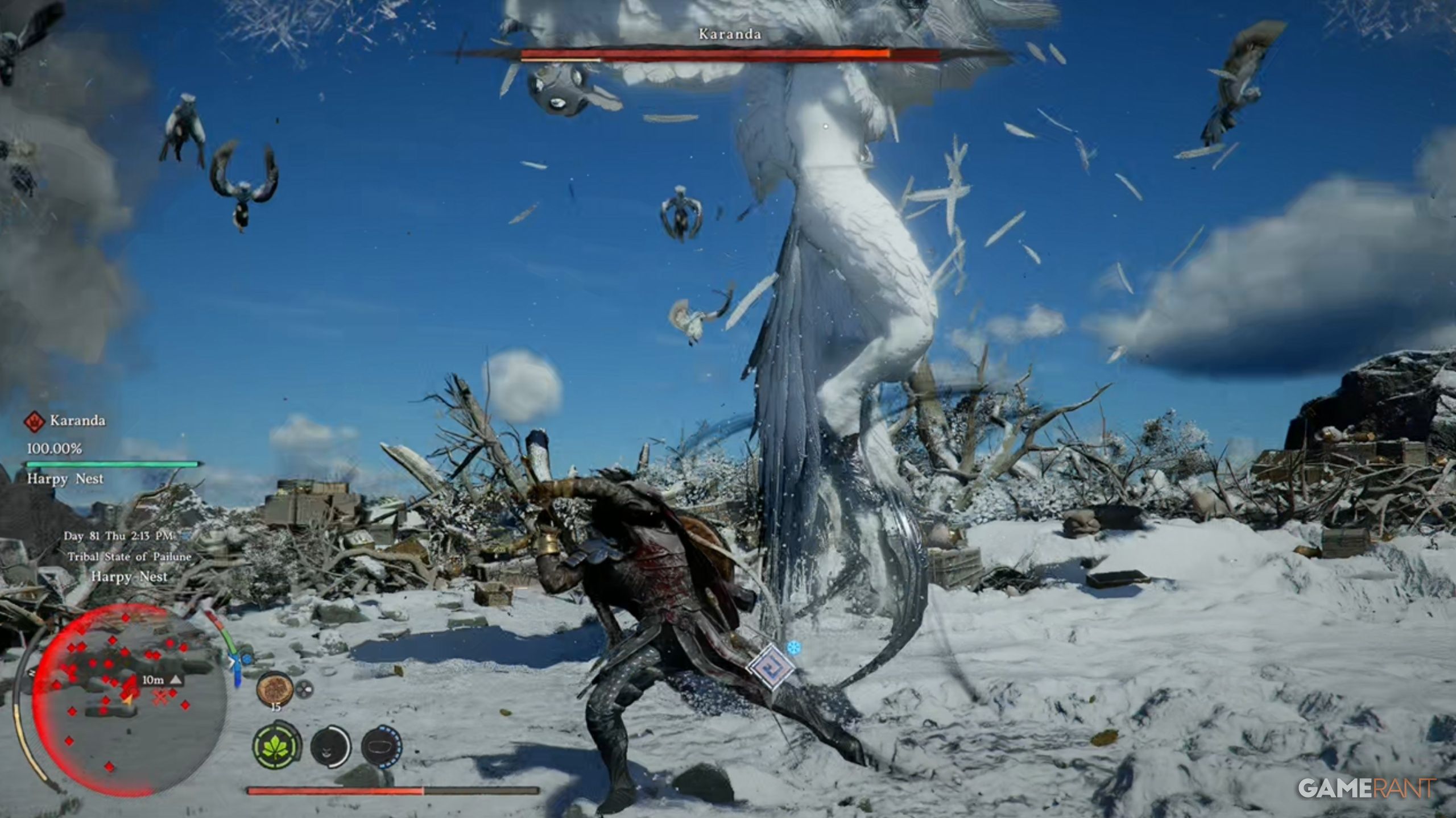 When you reach the Harpy Nest, don’t worry about the harpies flying around Karanda. They’re meant to leave you alone, but if they attack, allow Karanda to defeat you and then select “Retry” to calm them down.