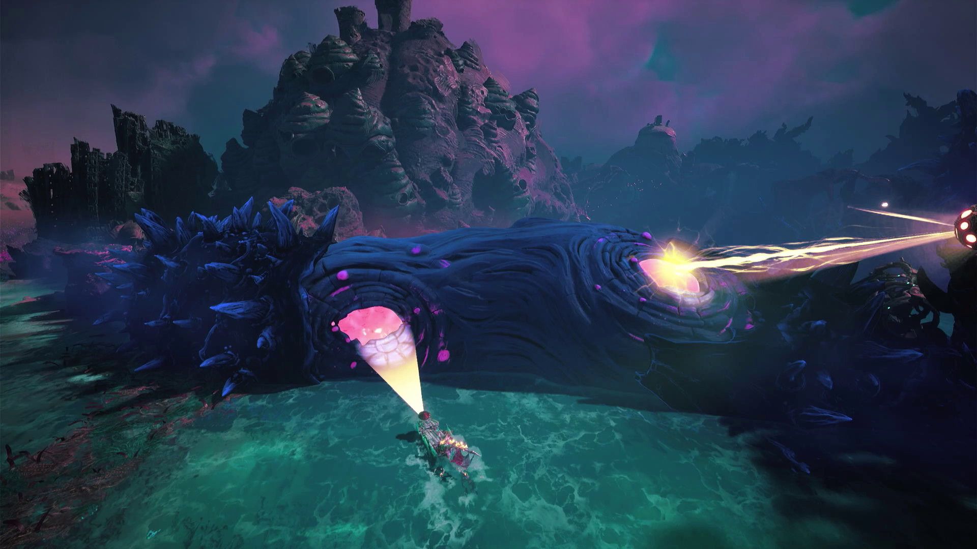 - Sail under the spikes on the left, and focus your light on the growth to the right.