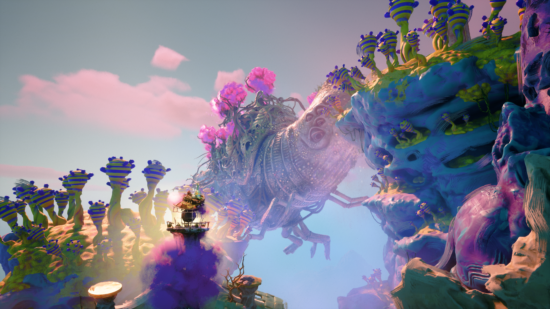 Keeper’s art style is heavily influenced by surrealist artists like Salvador Dali, Dr. Seuss, and Tim Burton, creating a consistently striking and unique visual experience throughout the game.
