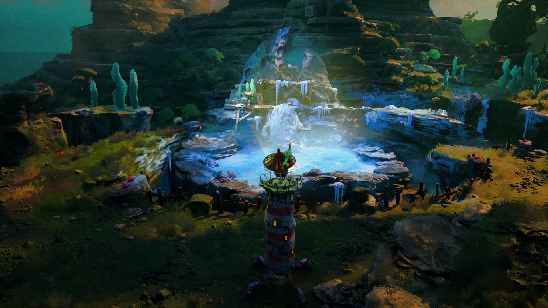 About halfway through playing, I jotted down “style over substance” because I found myself mostly just holding the joystick to guide the slow-moving lighthouse around obstacles. Then I’d quickly solve simple puzzles or interact with just one object to continue, and it felt like the visuals were prioritized over meaningful gameplay.