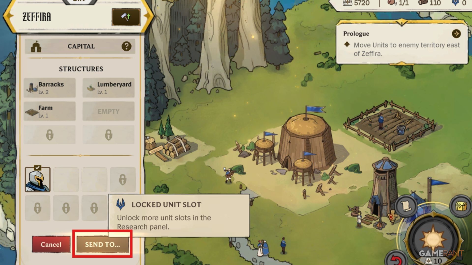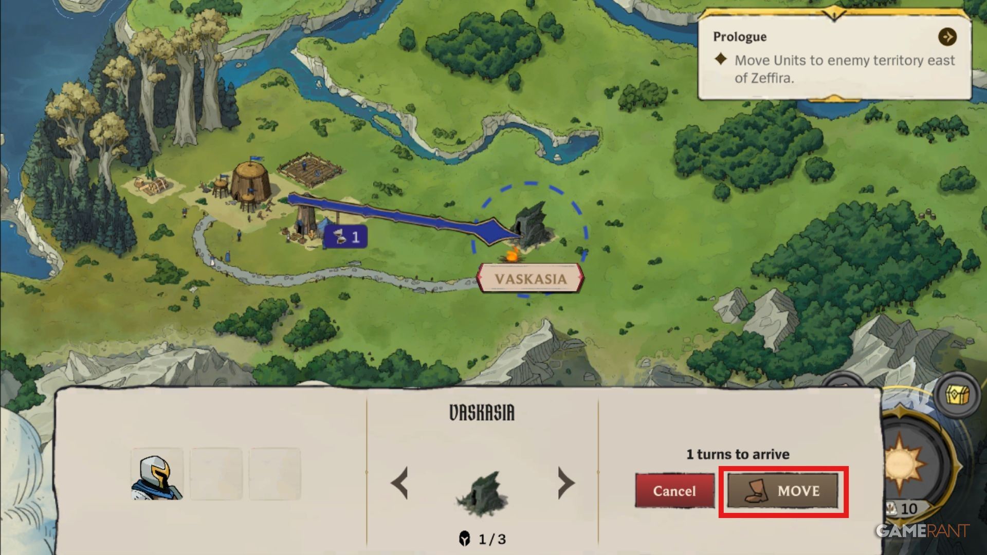 Once your units have finished training, you can click on your capital city to view them. Then, click the ‘Move’ button at the bottom of the screen and choose ‘Send To’ to select where you want to send your units in Vaskasia.