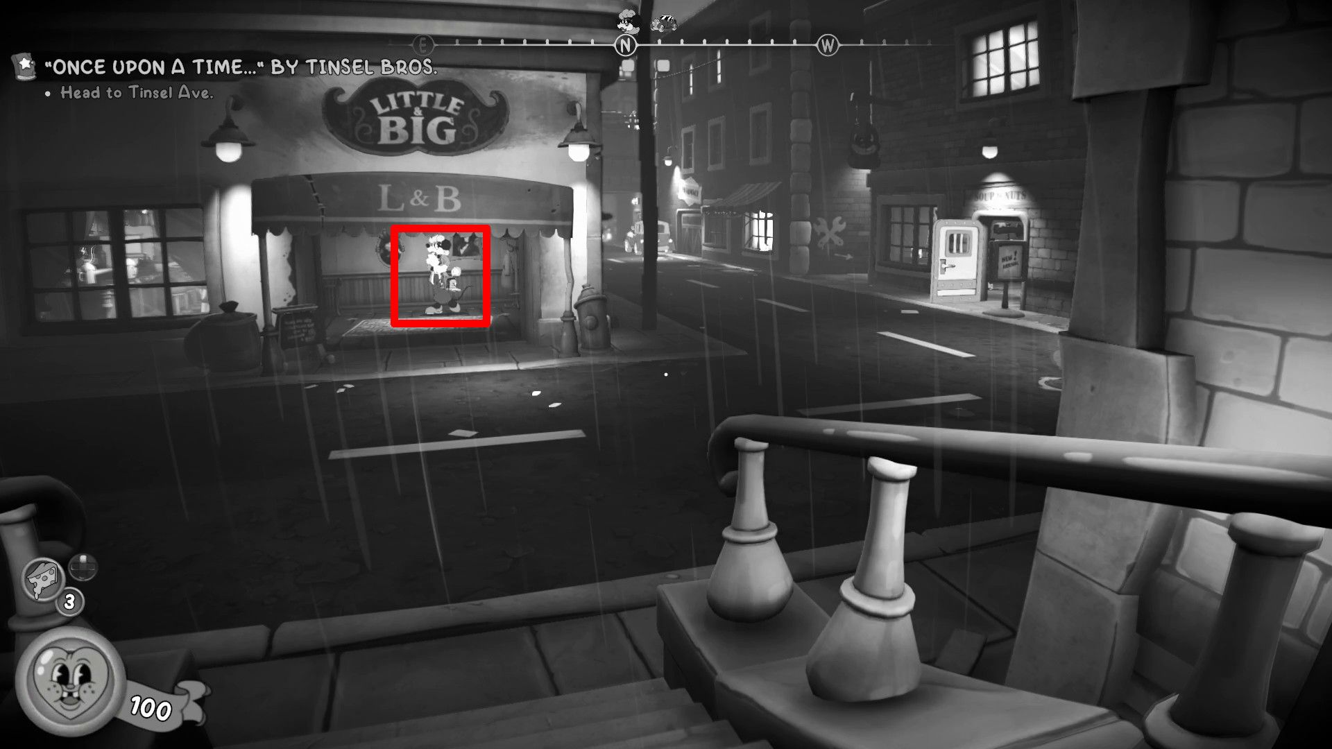 You can spend those coins on different things, like collectibles from Mouse: P.I. for Hire, at the Soup to Nuts shop, which is close to Little & Big.