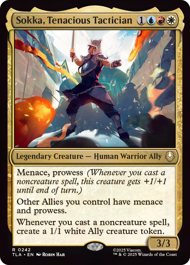 The set features creatures inspired by the world of Avatar, including badgermoles. The ‘ally’ creature type returns with cards that work well together, and Sokka is one of them! His ‘Sokka, Tenacious Tactician’ card boosts ally creatures and creates more ally tokens using the Jeskai color combination (red, white, and blue).