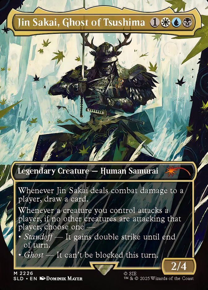 Many players have expressed their frustration with the announcement that Atsu, Ghost of Yotei is being reprinted, particularly because the upcoming Jin Sakai, Ghost of Tsushima card seems so distinct and strong. Jin is a rare combat-focused Esper commander, similar to Final Fantasy’s Noctis from the core set, or a new commander coming in the December 5th Scene Boxes.