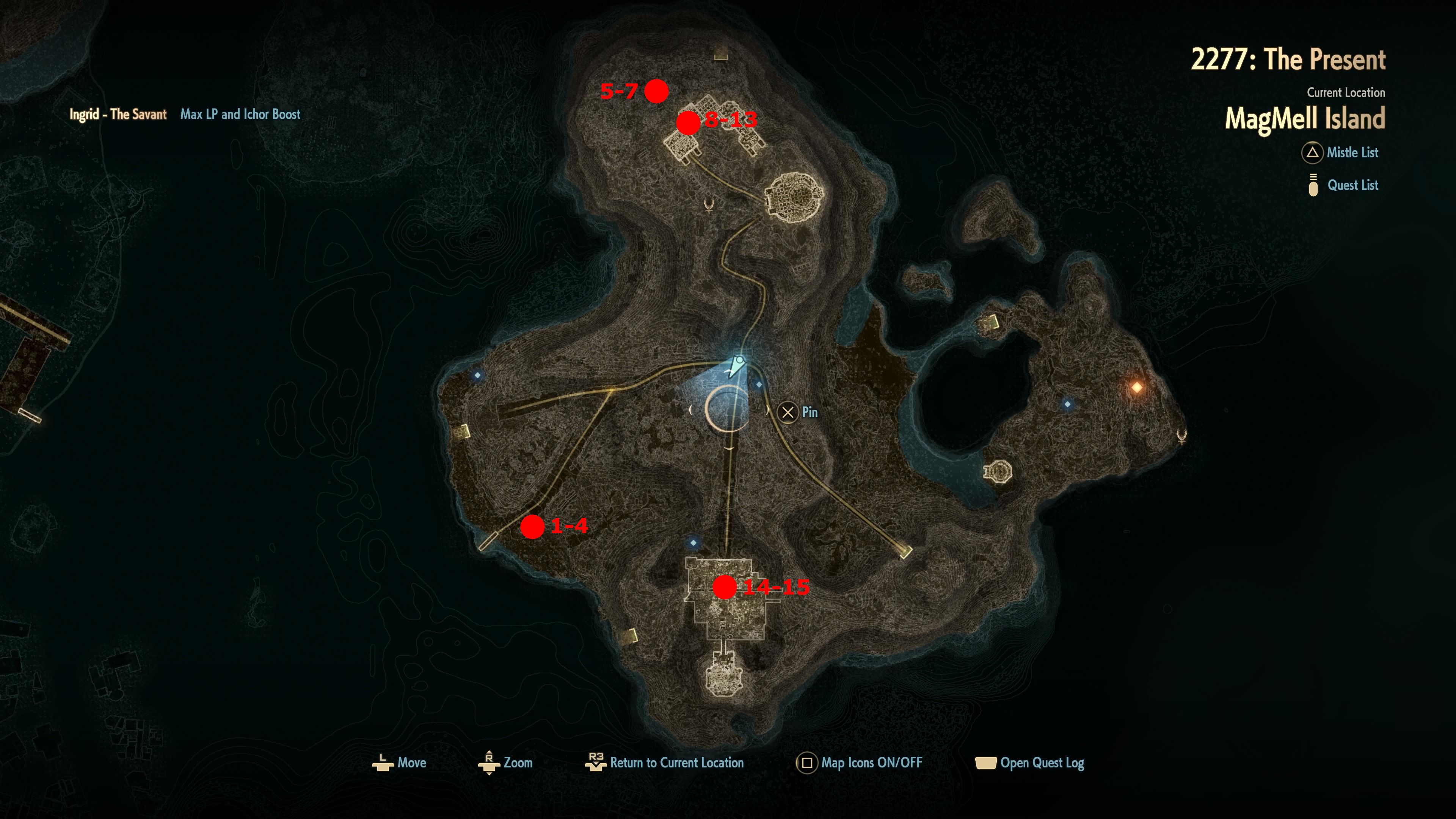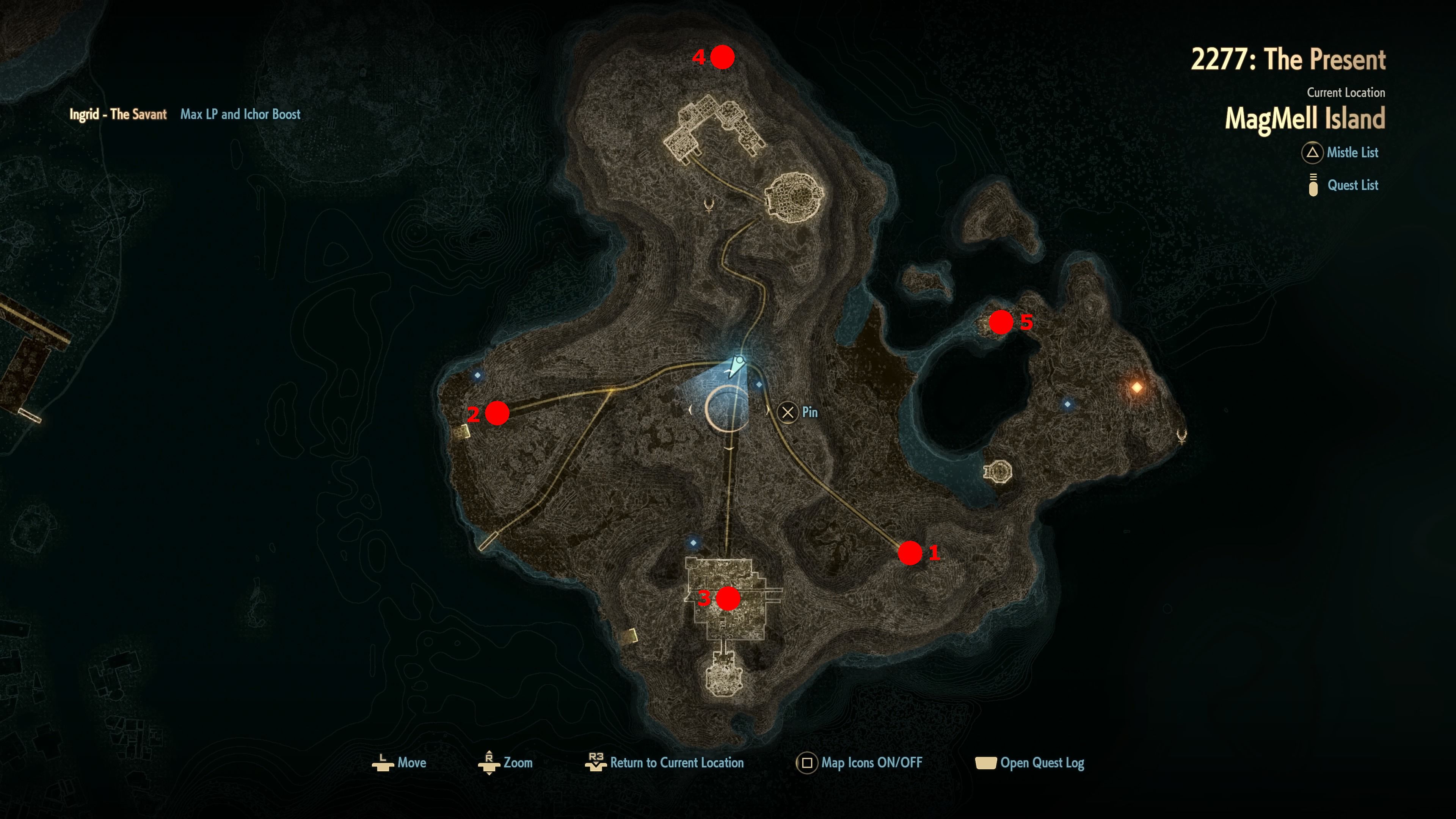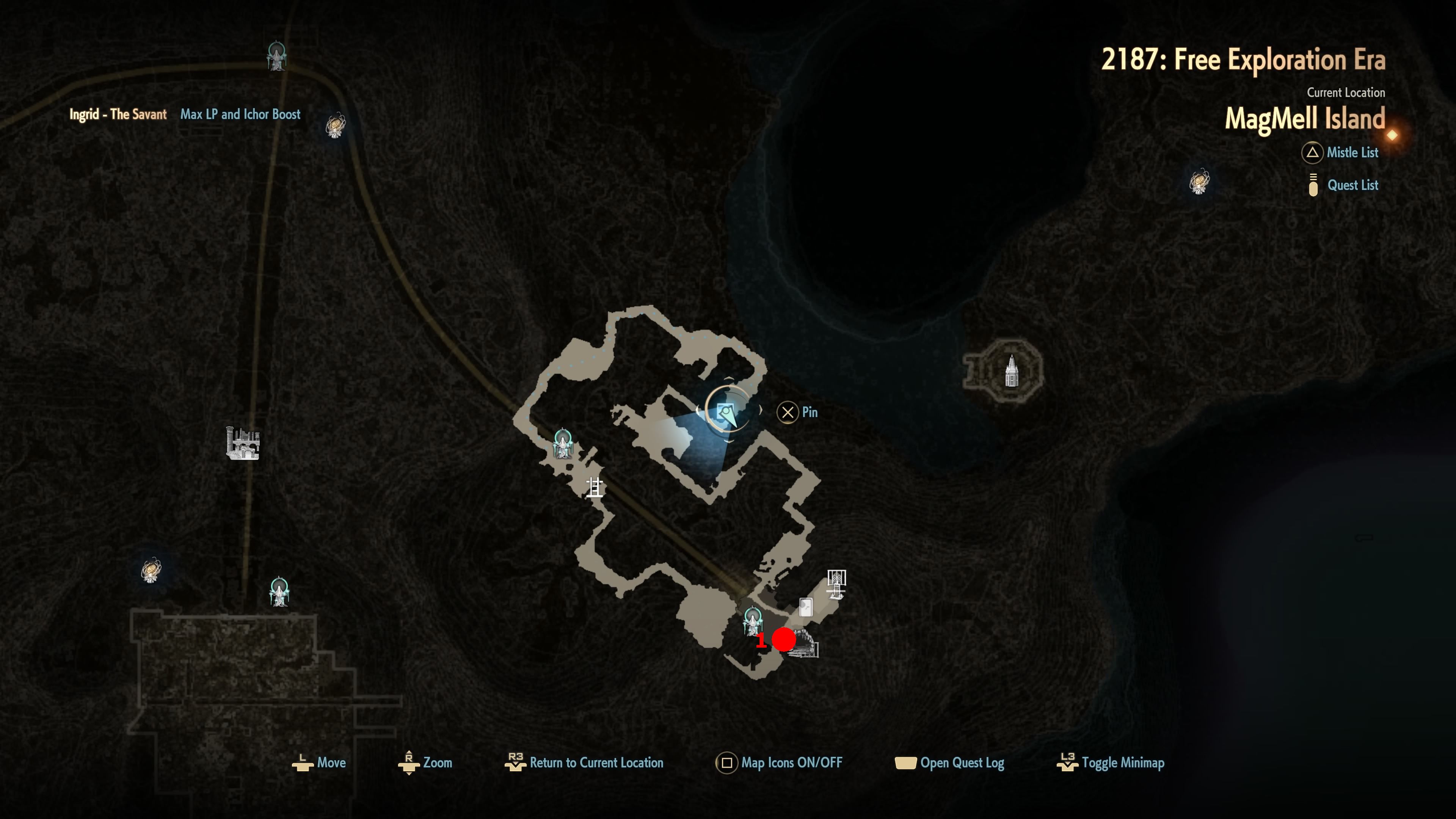 | 2 | Ingrid – The Savant | Max LP and Ichor boost. | East edge of the island. |