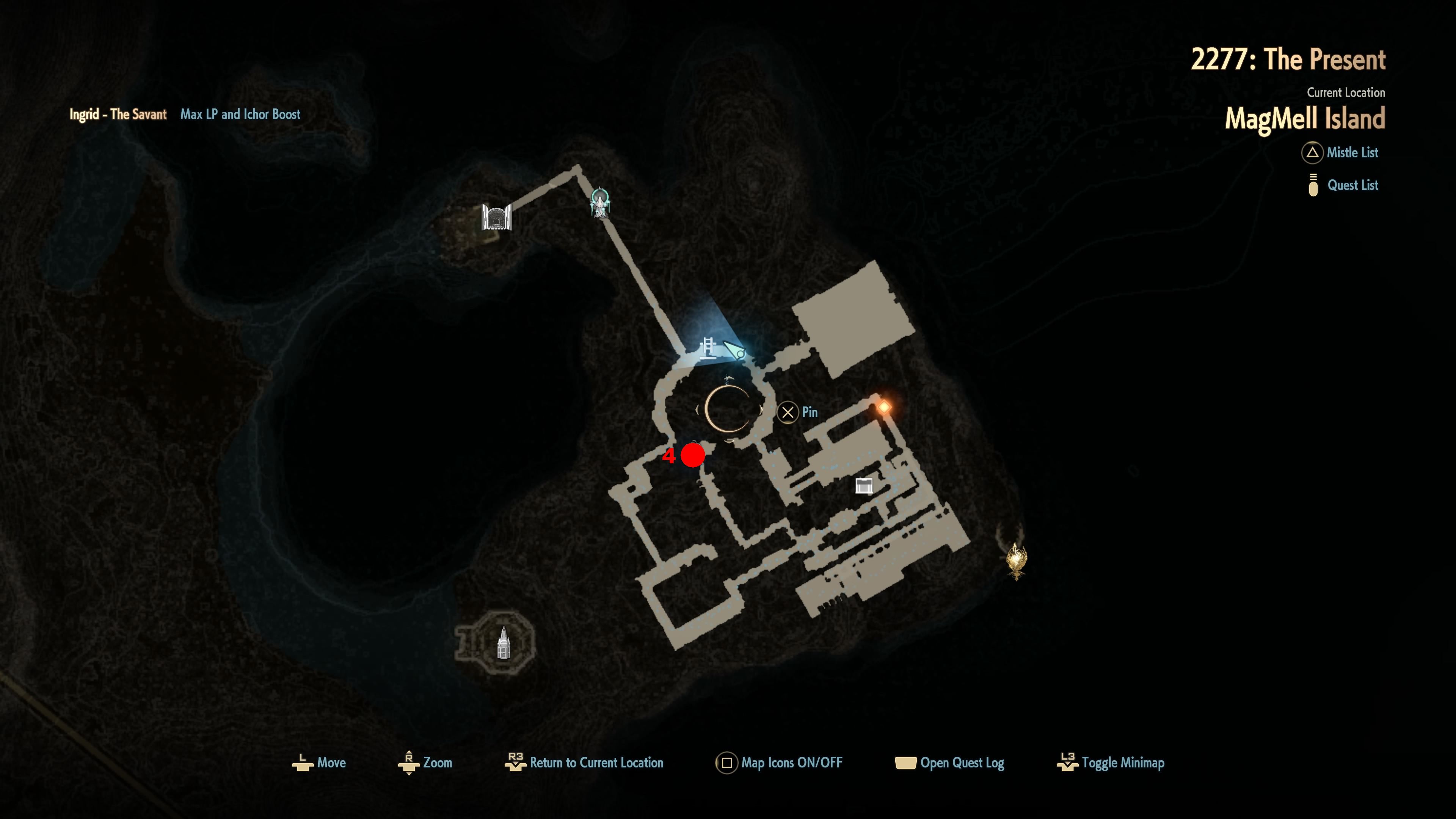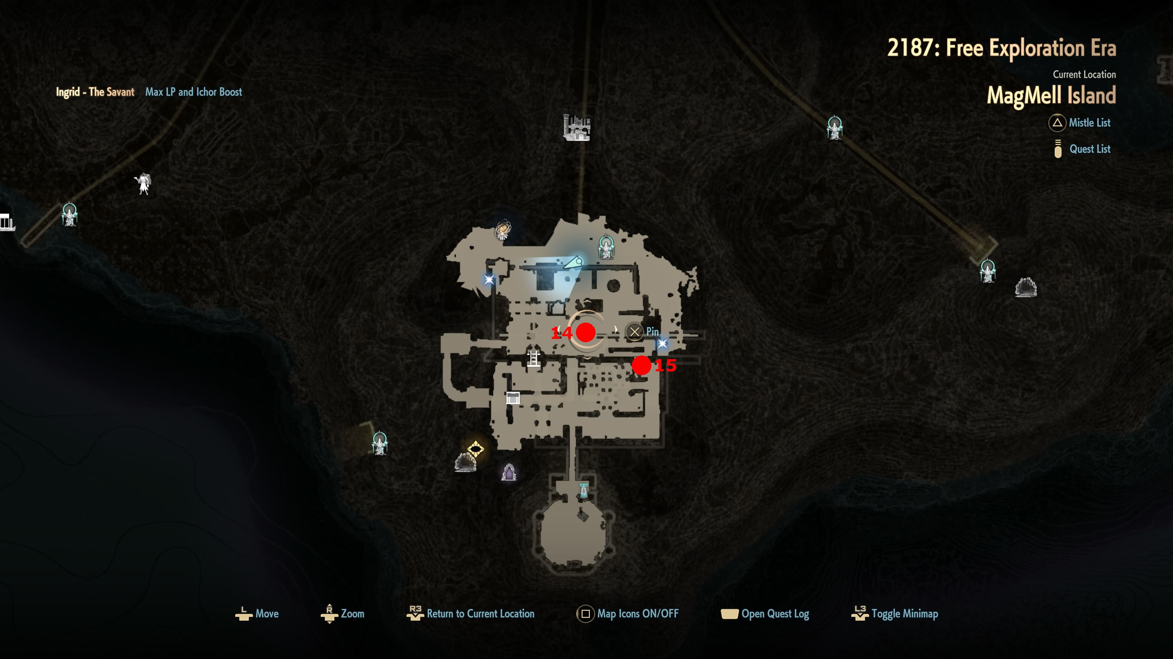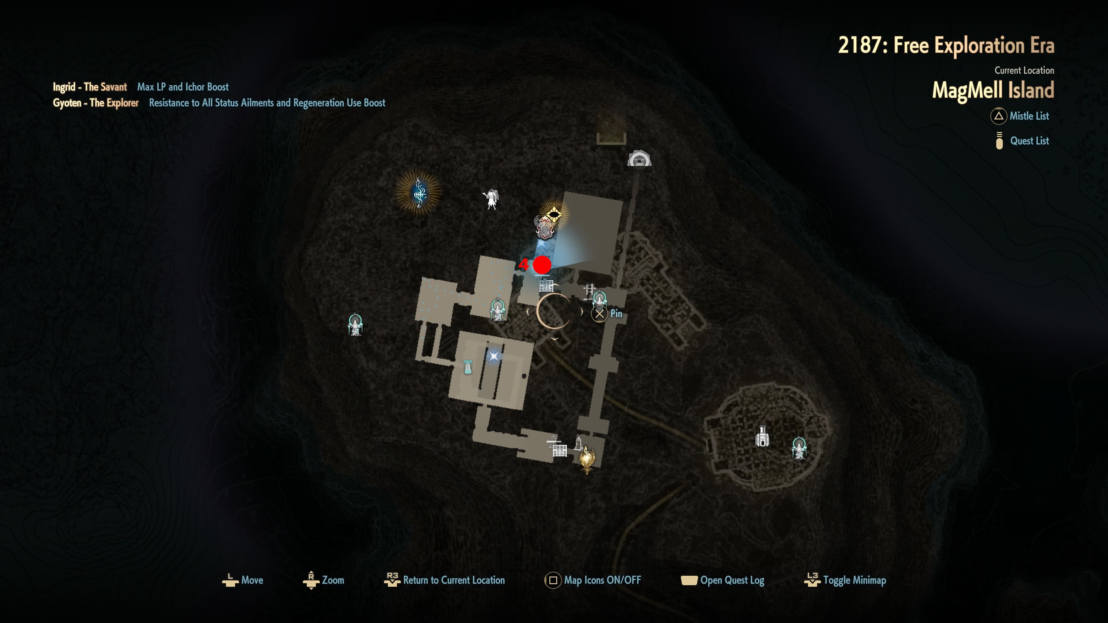 | 2 | Ingrid – The Savant | Max LP and Ichor boost. | East edge of the island. |